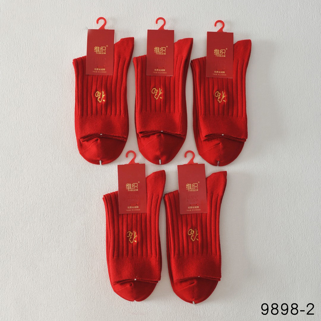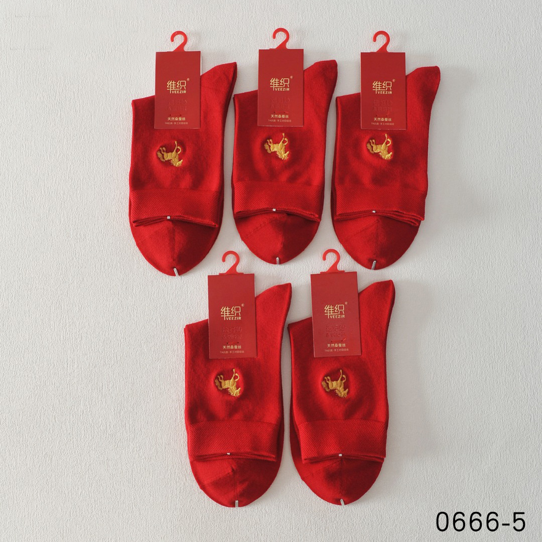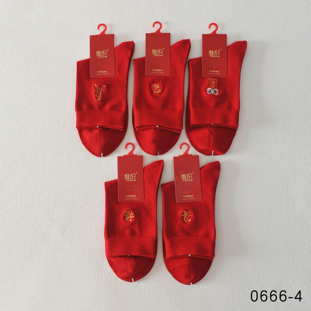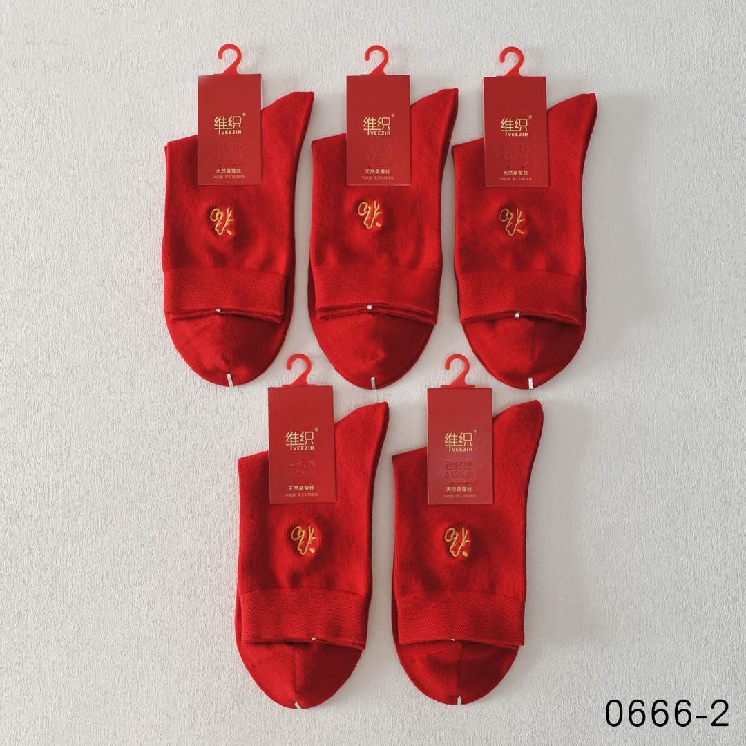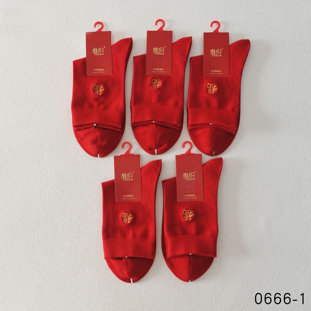 唯织桑蚕丝大红男袜 本命年袜子福字马年大红色中筒袜秋冬结婚袜