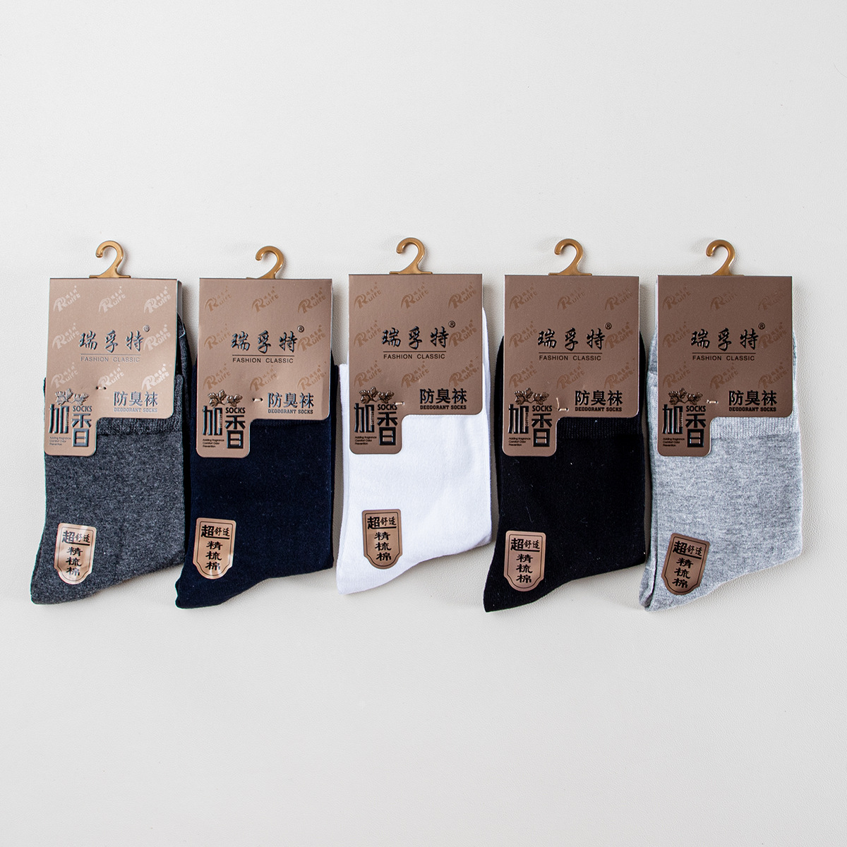 瑞夫特3007加香防臭靴下超快適精練綿ビジネスカジュアル男性靴下純色中筒綿靴下秋冬