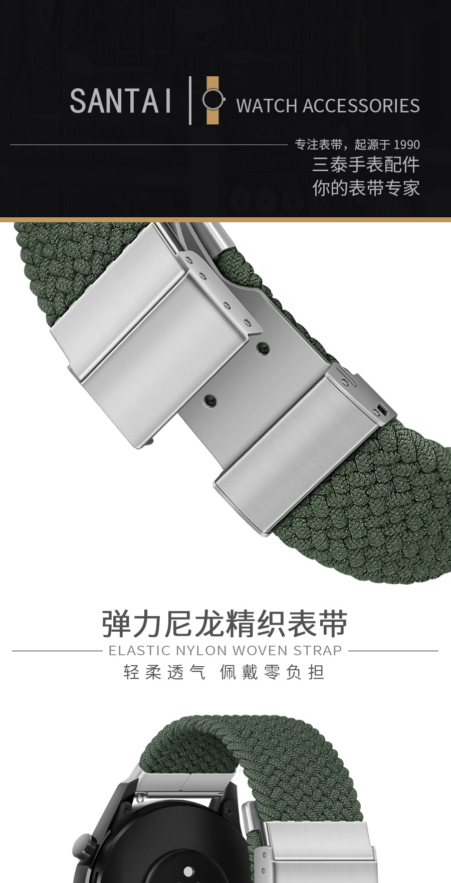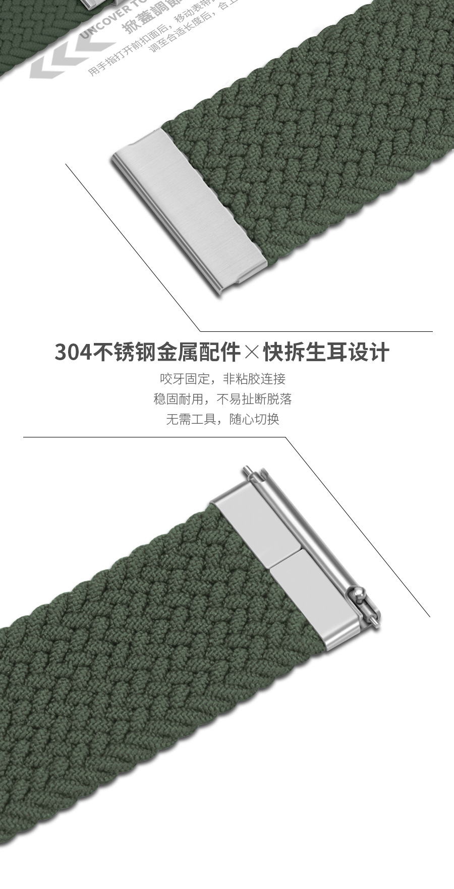 適用華為WatchGT2/3Proサムスン米知能腕時計バンド弾力ナイロン編組時計チェーン20mm