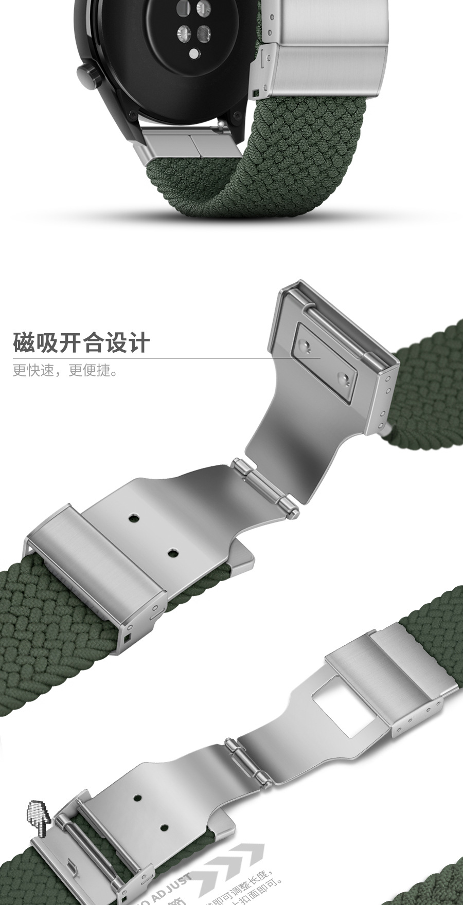 華為gt3/gt4腕時計バンド20mm/22mm汎用型シリカゲル強磁気吸引ボタンを適用してリストバンドを交換する