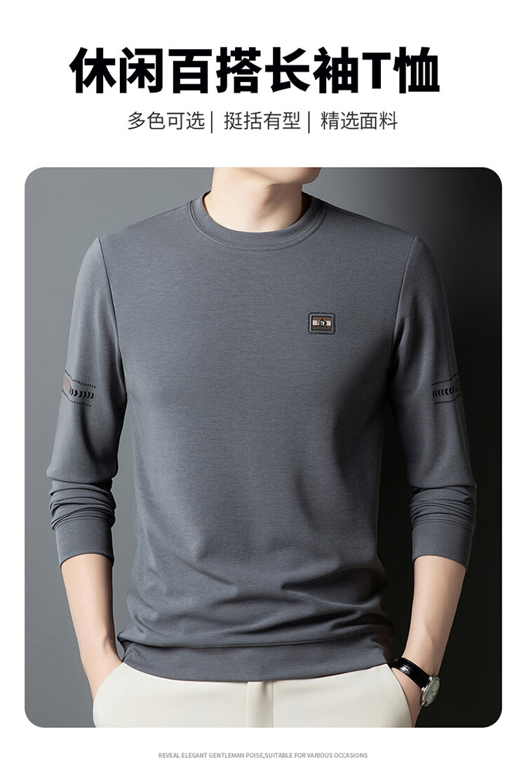 290g长袖圆领t恤男商务休闲7A抗菌打底衫内搭保暖秋冬季纯色上衣