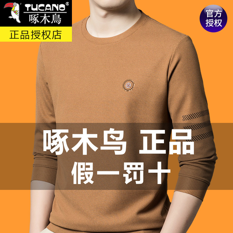 啄木鸟正品棉质男士长袖t恤春秋季纯色圆领卫衣男宽松大码打底衫