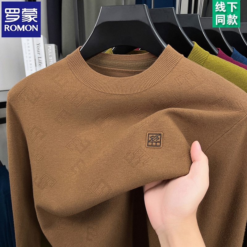 罗蒙羊毛衫男士春秋款针织衫圆领薄款毛衣男长袖t恤线衣打底衫男