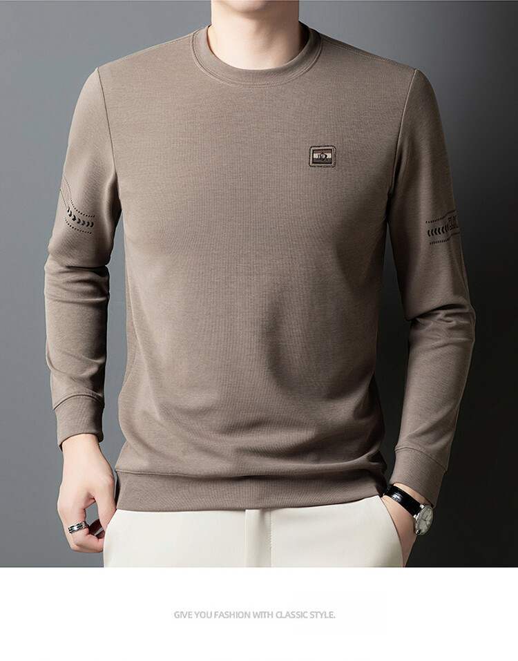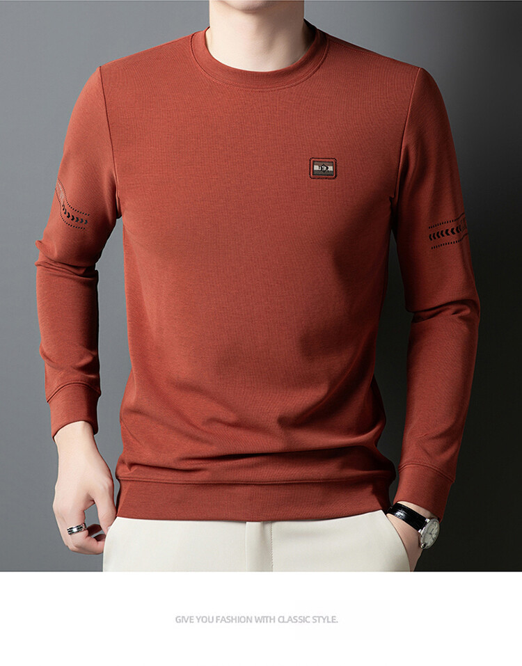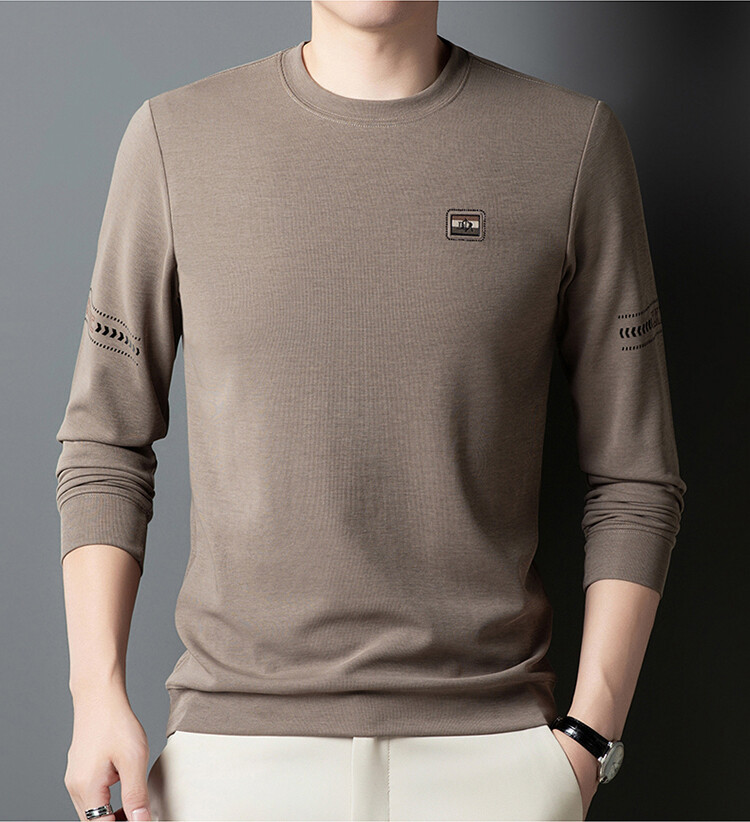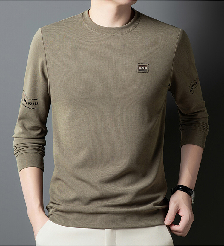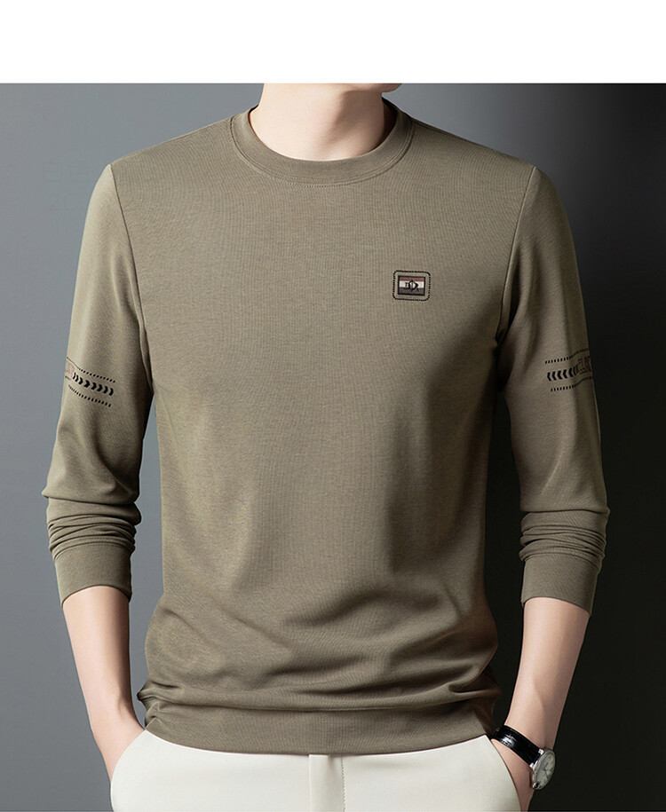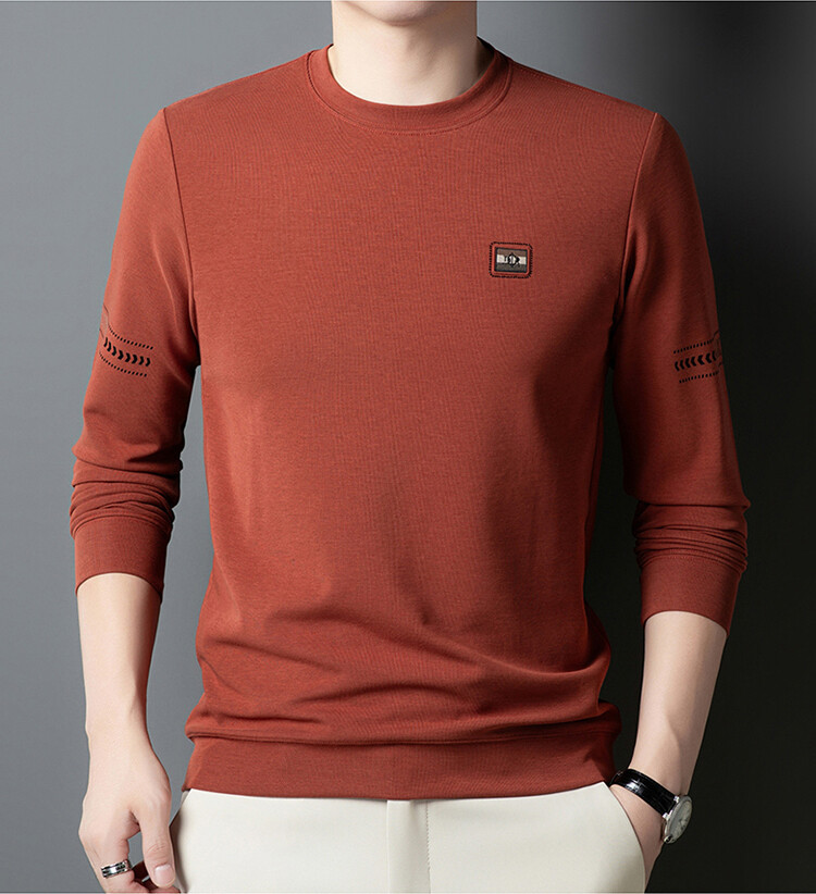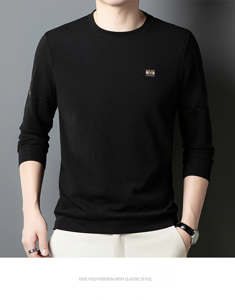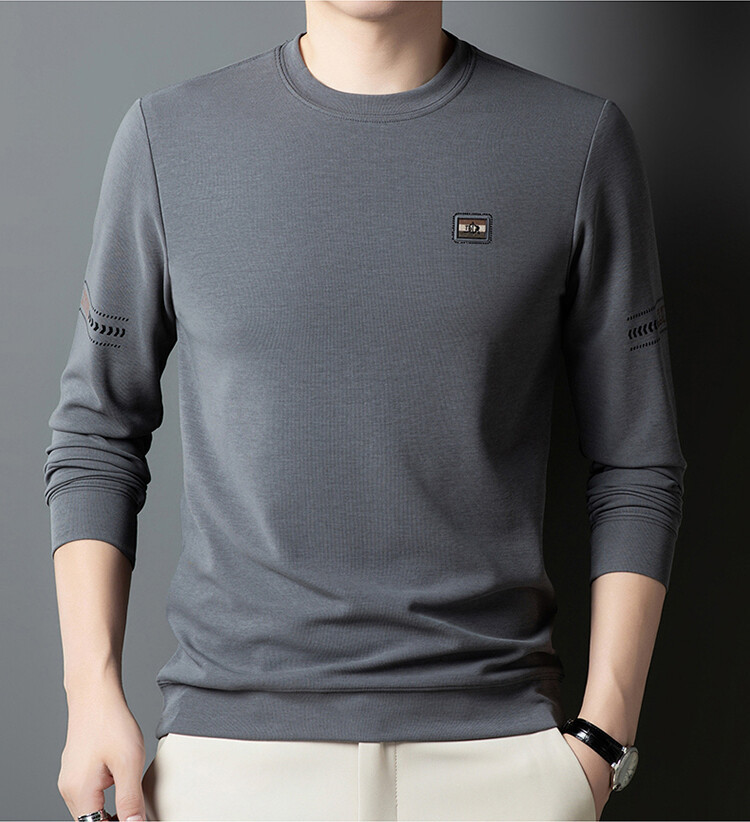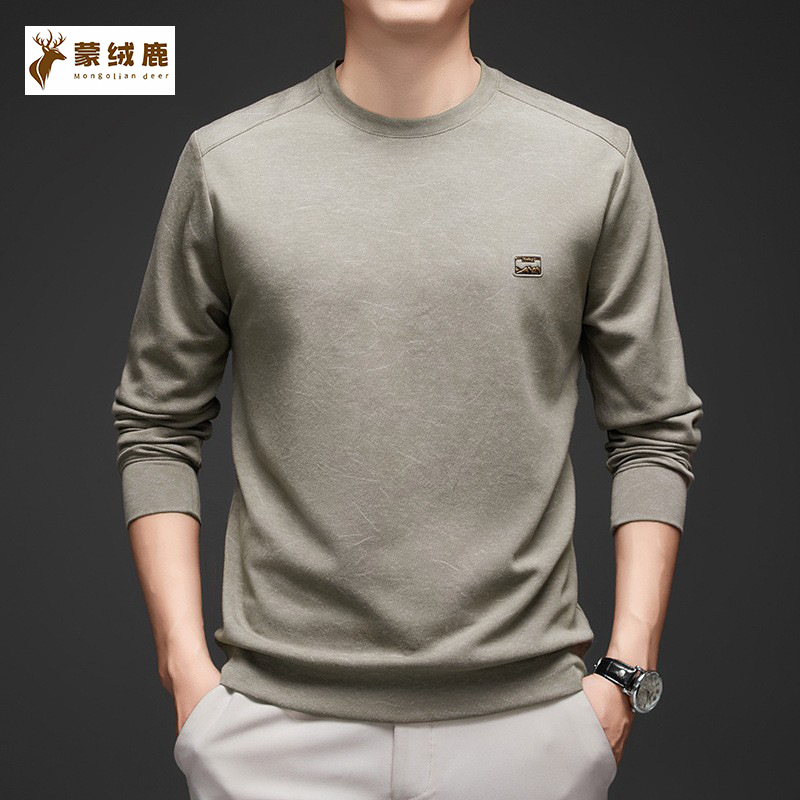 罗蒙棉质长袖t恤男圆领休闲秋冬中年打底衫上衣服纯色休闲上衣男