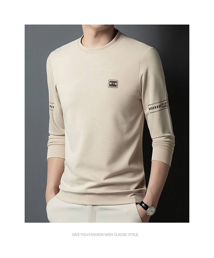 春と秋の男性の長袖の新型の純色のtシャツのファッションはカジュアルでゆったりしています。