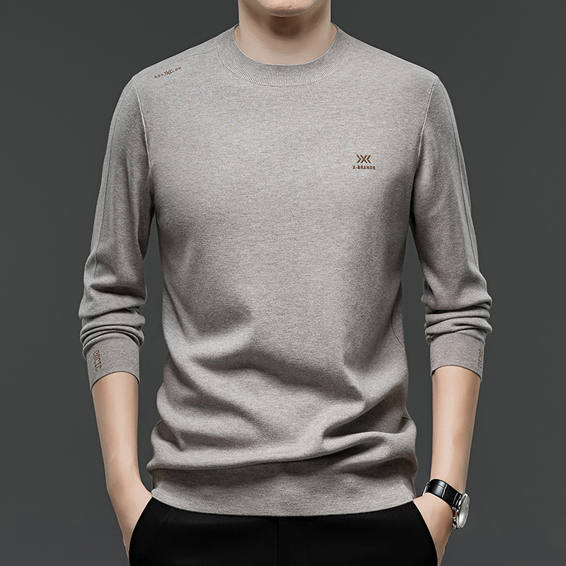 恒源祥男性セーター春秋のニットセーターの丸首の純色の底のシャツの中年の薄いカジュアルな上着