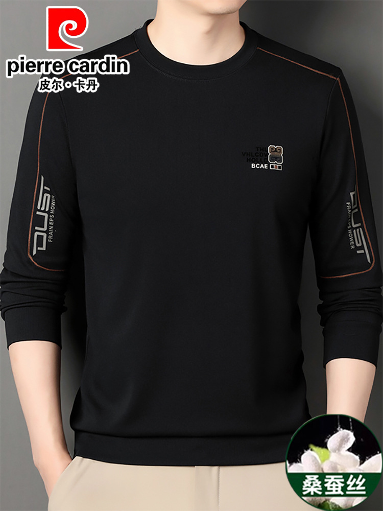 皮尔卡丹长袖t恤男2025春季新款中年桑蚕丝卫衣打底衫薄圆领男装