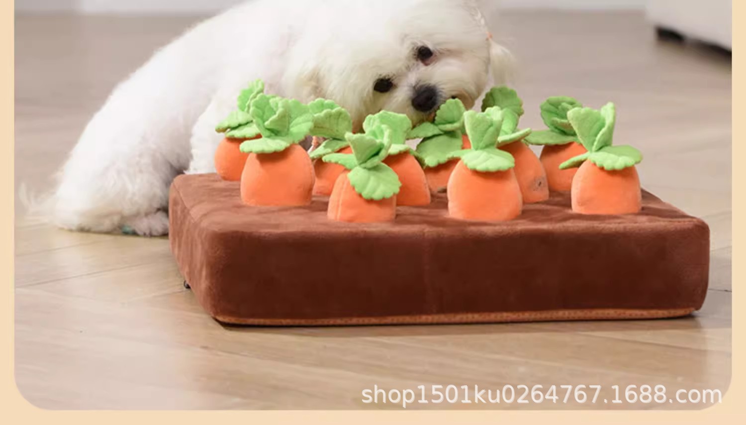 国境を越えたスポットペットのぬいぐるみ犬のおもちゃ大根を抜いて声をかじって、自分の食べ物を解凍してペットのおもちゃを嗅ぐ