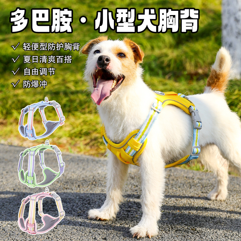 犬の牽引ひものドーパミンは色のペットの胸にぶつかります。