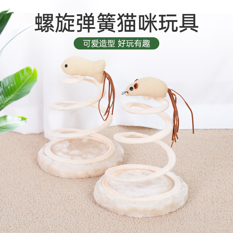 ペット面白い猫のおもちゃぬいぐるみスプリングディスク面白い猫のおもちゃマウススパイラルワイヤースプリングリネンディスク猫のおもちゃ