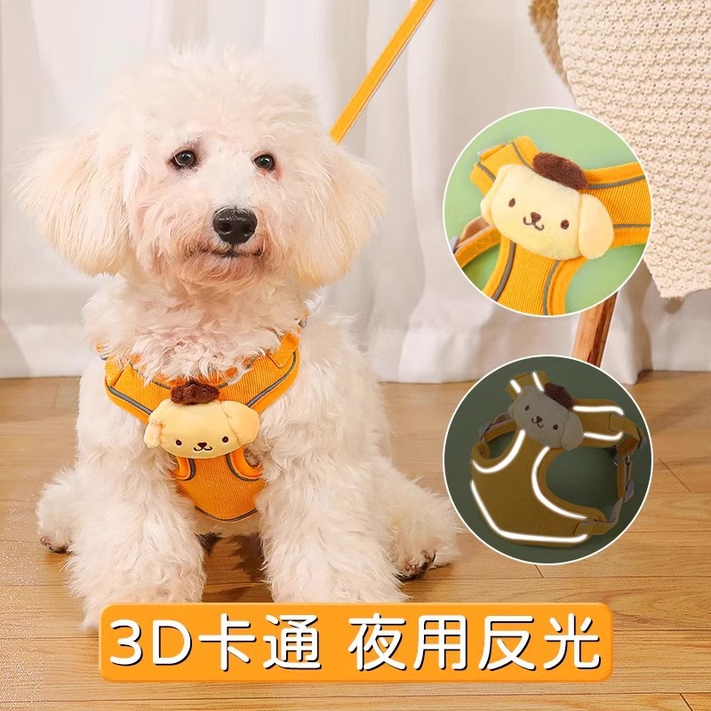 猫用リード、ベスト型、かわいい漫画柄ペット用ハーネス、外出時の脱走防止、犬用散歩用猫用リード、伸縮式