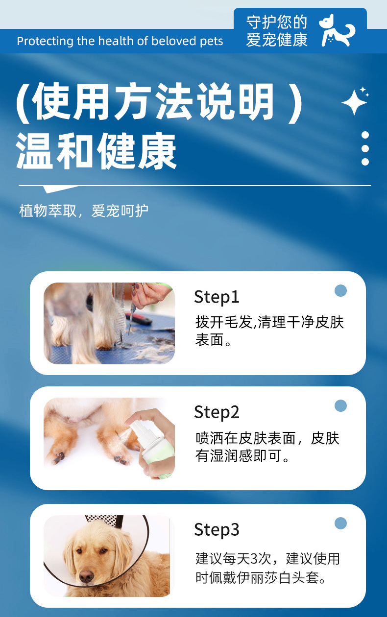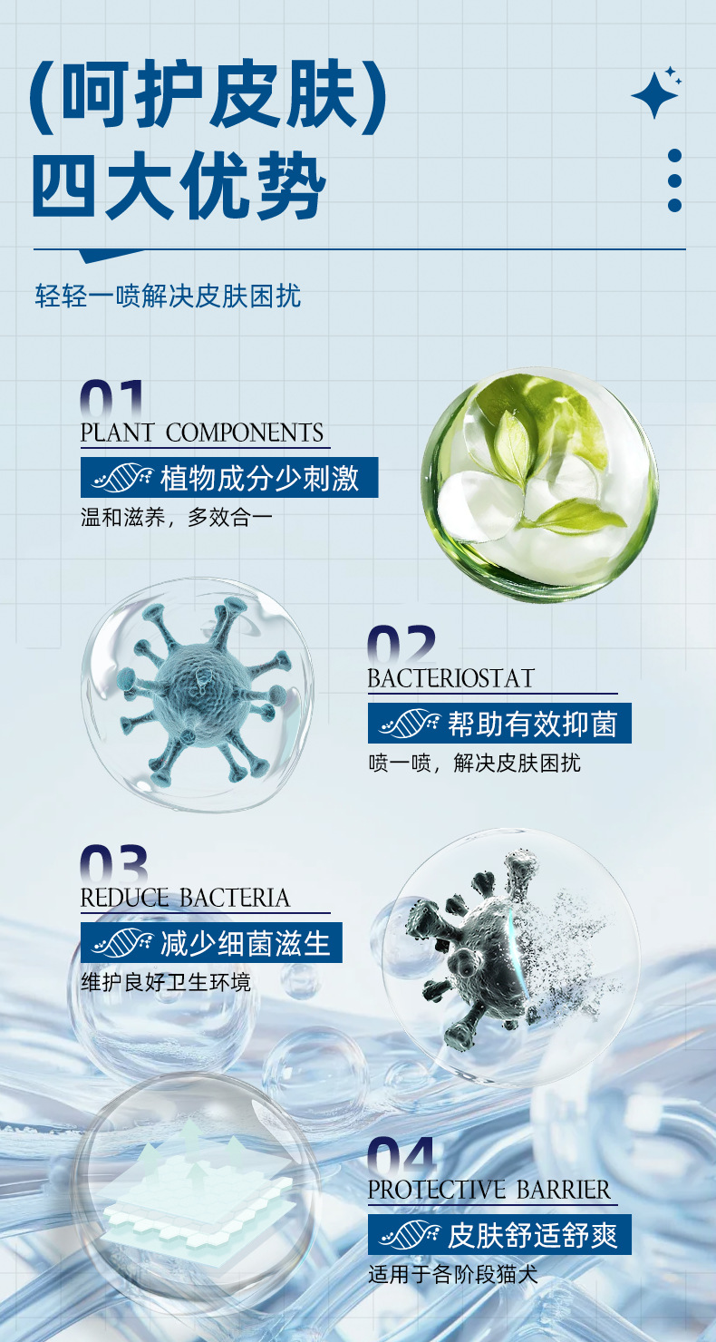 安宠乐ペット皮膚炎ケアスプレー 猫犬用皮膚細菌抑制スプレー 猫の白癬・かゆみ・抜け毛対策・かゆみ止め・修復