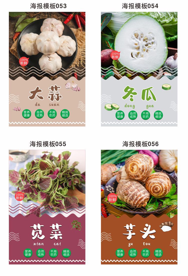 壁面のバックテープは紙を貼って現物の生鮮野菜の野菜のポスターのスーパーのガラスの扉の装飾用品を描きます。