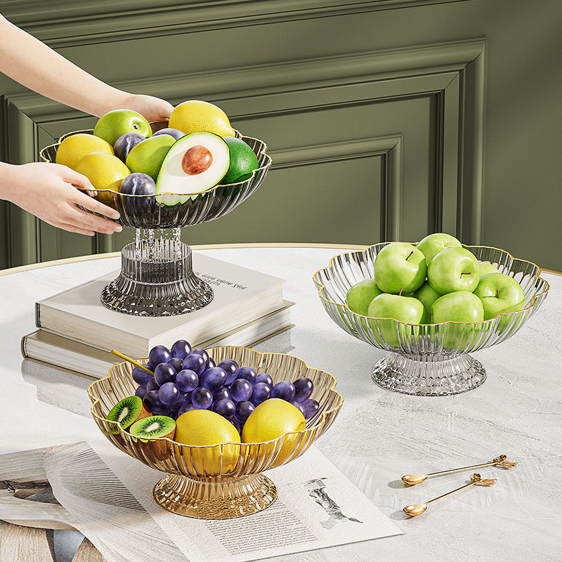 軽くて豪華なゴールドエッジフルーツプレート、ドライフルーツプレート、リビングルームの装飾品、スナックプレート、花型の大容量プラスチックフルーツプレート