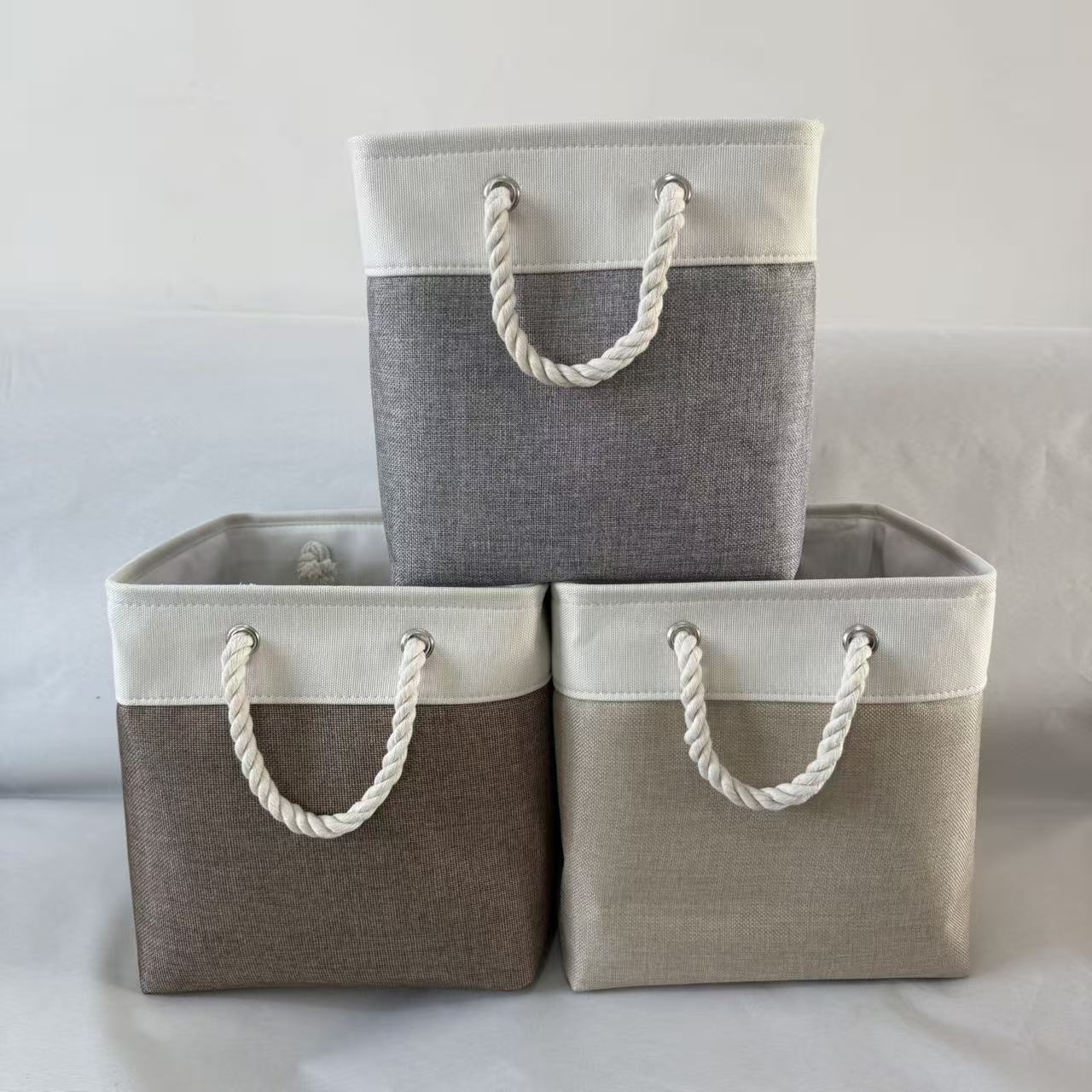 跨境拼接可折叠收纳筐家居卧室衣柜衣物玩具杂物亚麻加厚收纳篮