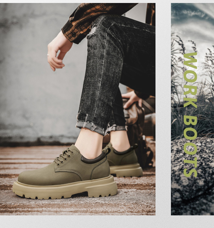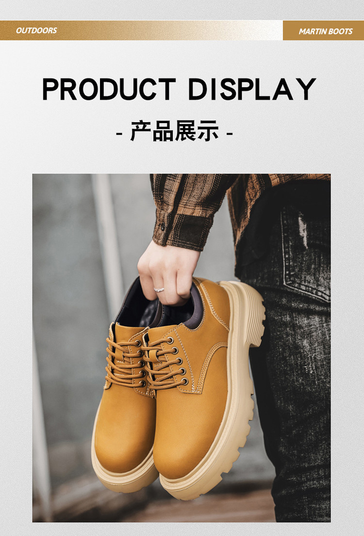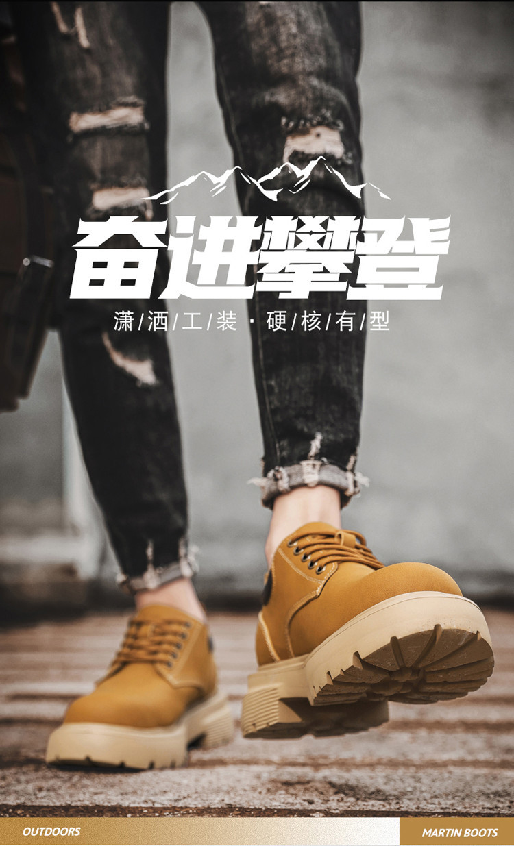 工装靴男2024秋の新型アウトドアレジャー低助マーティンブーツ大黄靴底が高くなって軽やかな男靴