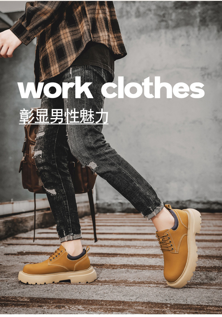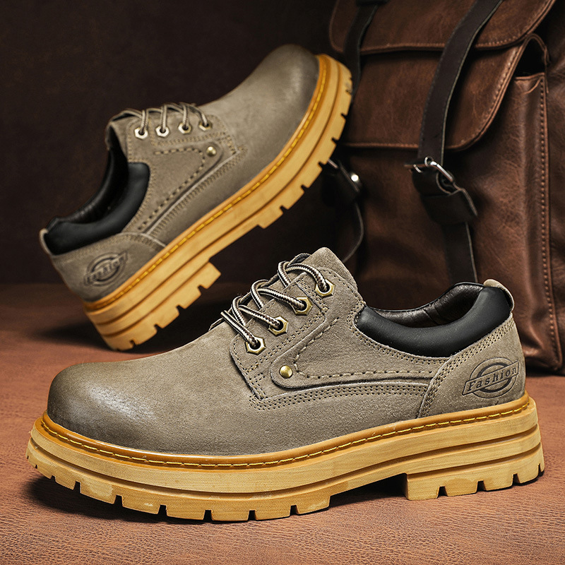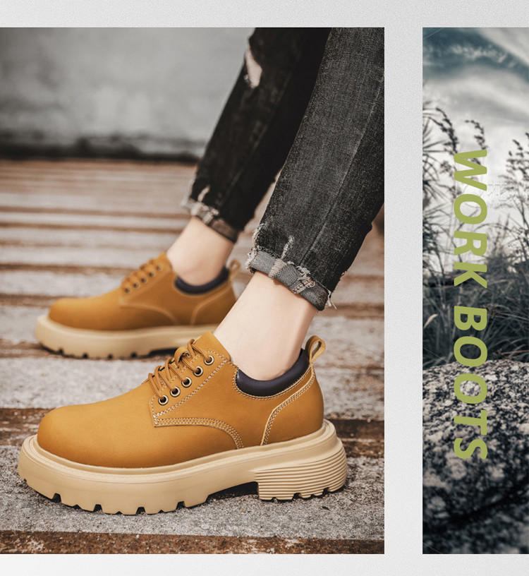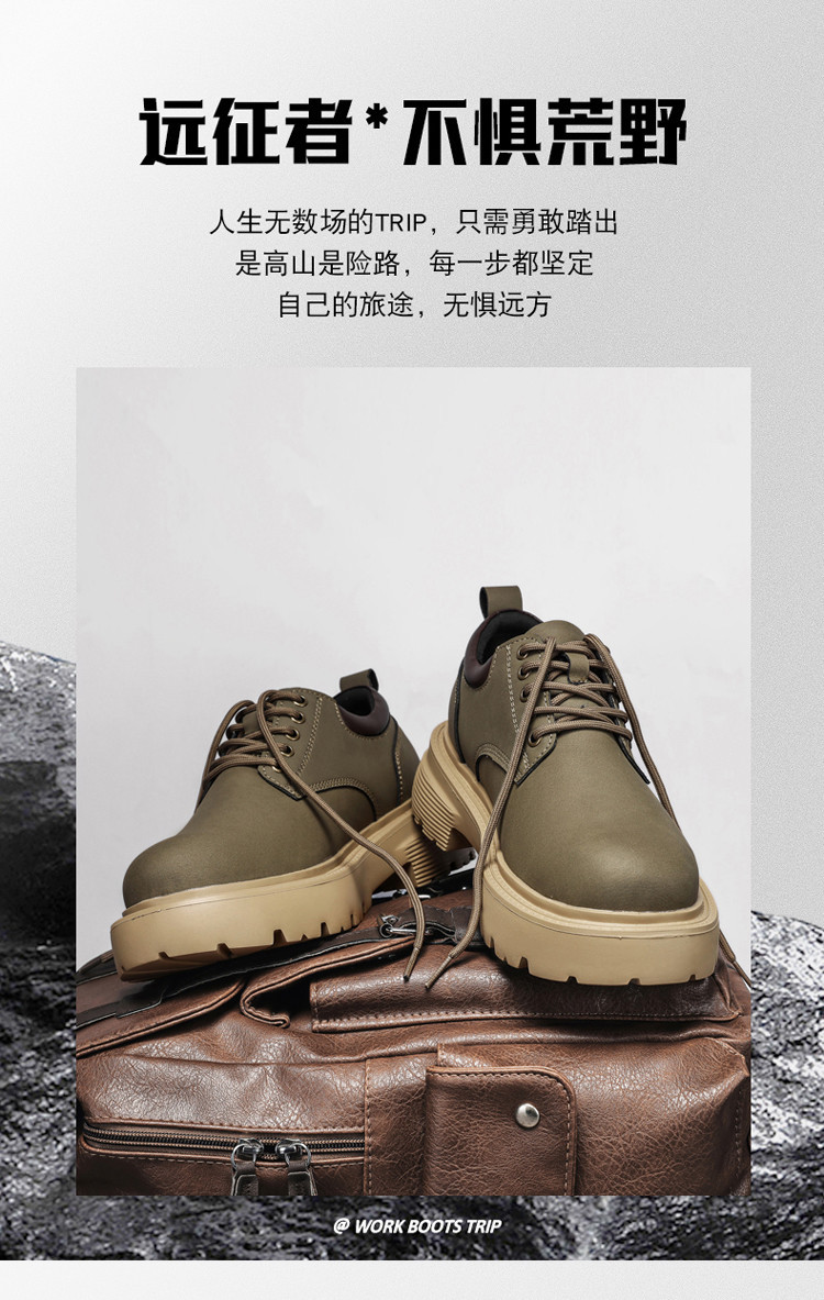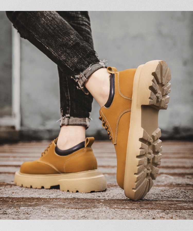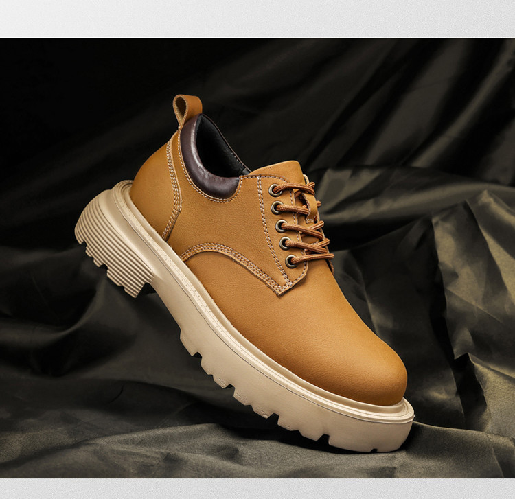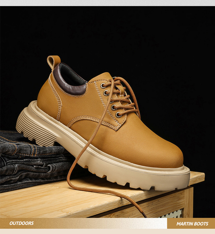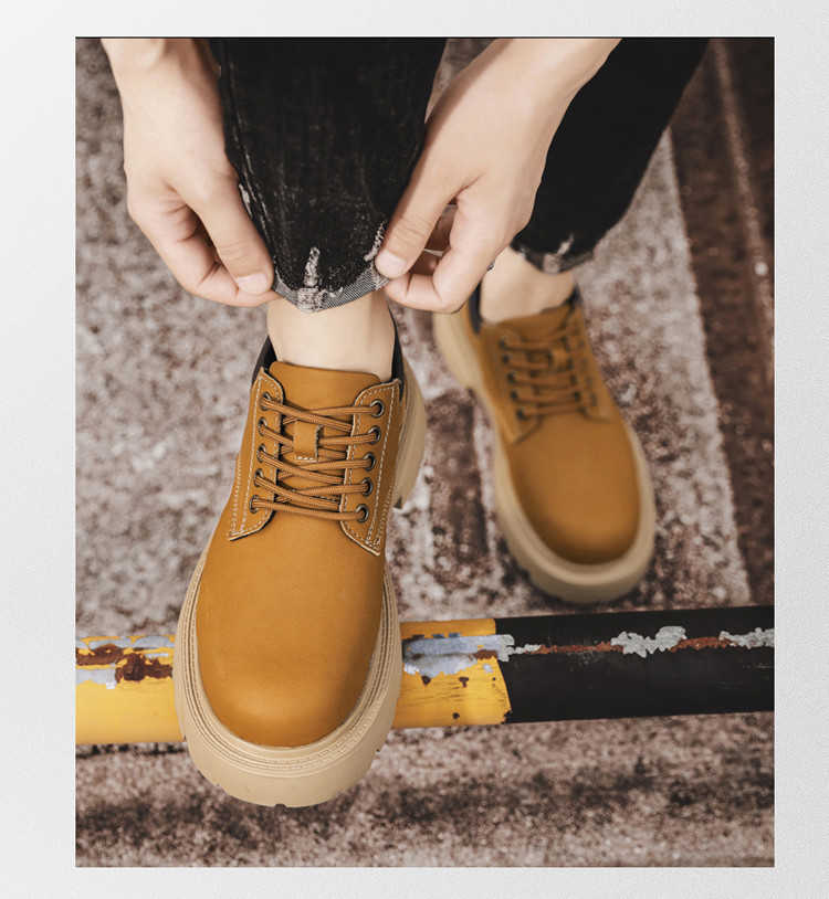 工装靴男2025春の新型高品質低組大黄靴頭層豚皮復古厚い底カジュアル男靴