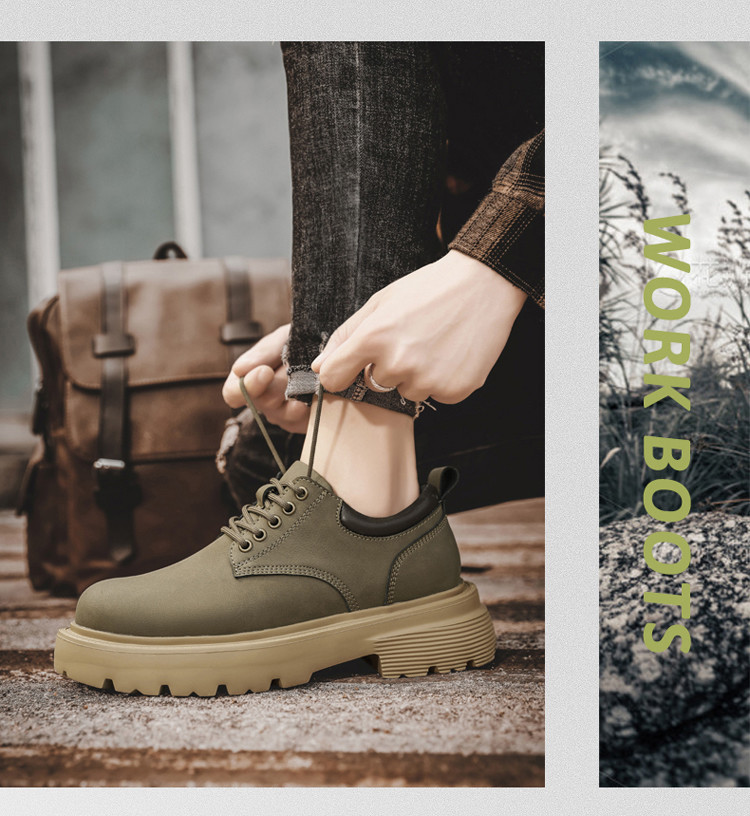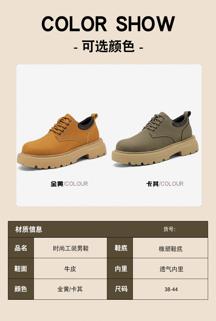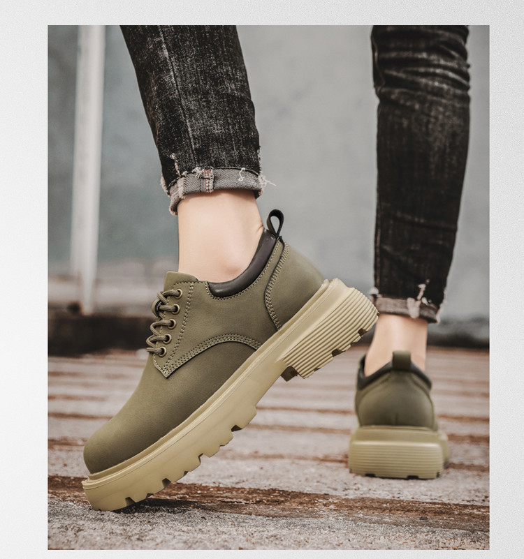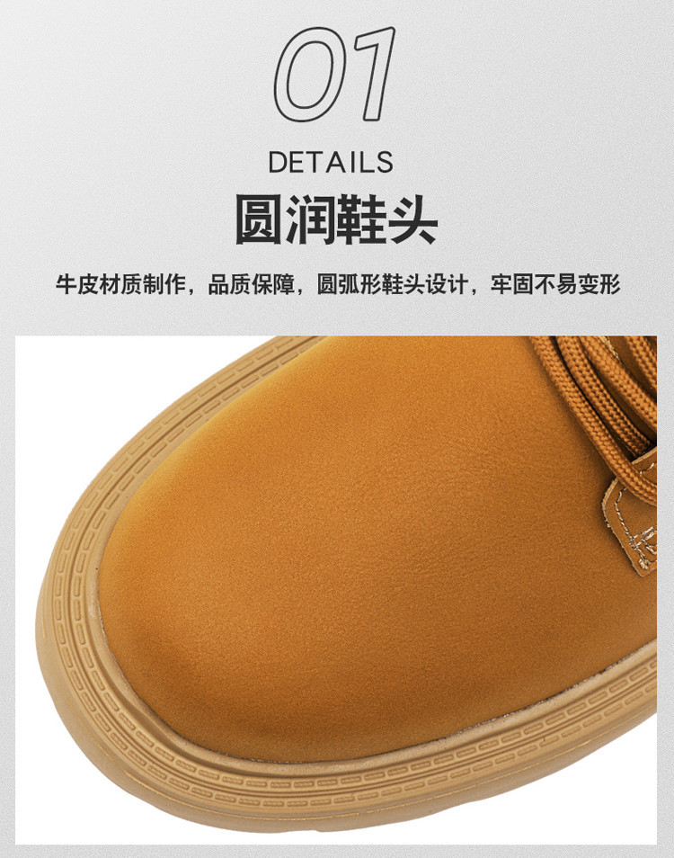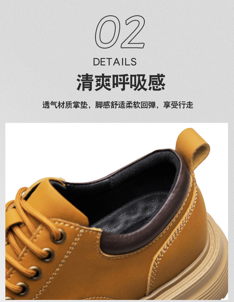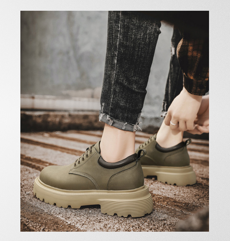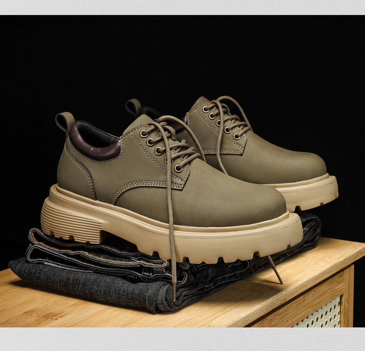 工装靴男2025春の新型高品質低組大黄靴頭層豚皮復古厚い底カジュアル男靴