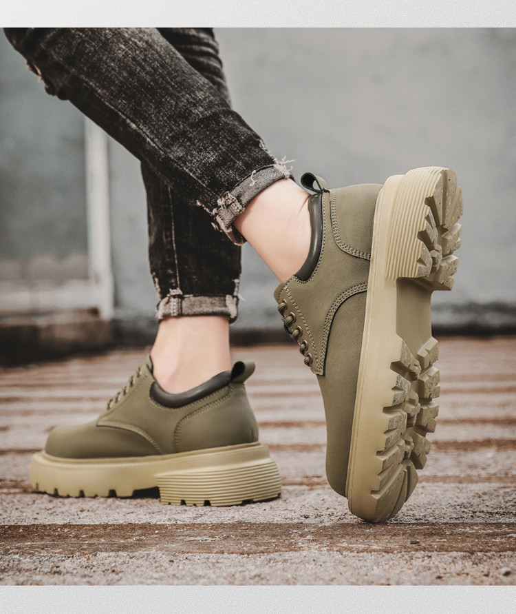 男鞋2025秋冬新款厚底工装板鞋复古英伦风皮面休闲鞋男士厚底时尚
