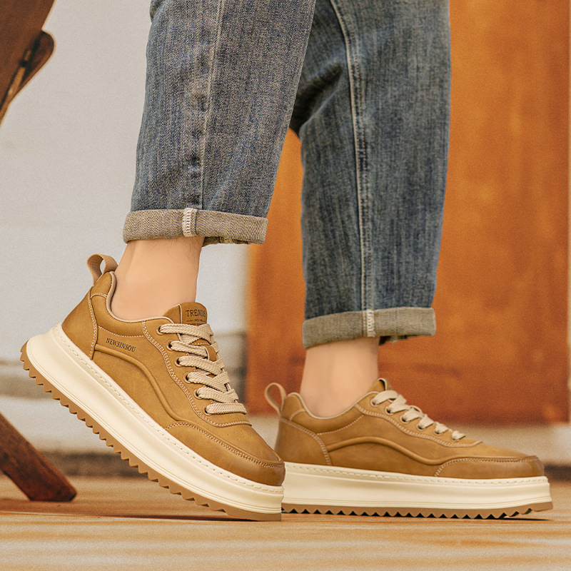运动鞋男款小众真皮鞋子男士厚底增高鞋板鞋板鞋男低帮休闲鞋潮款