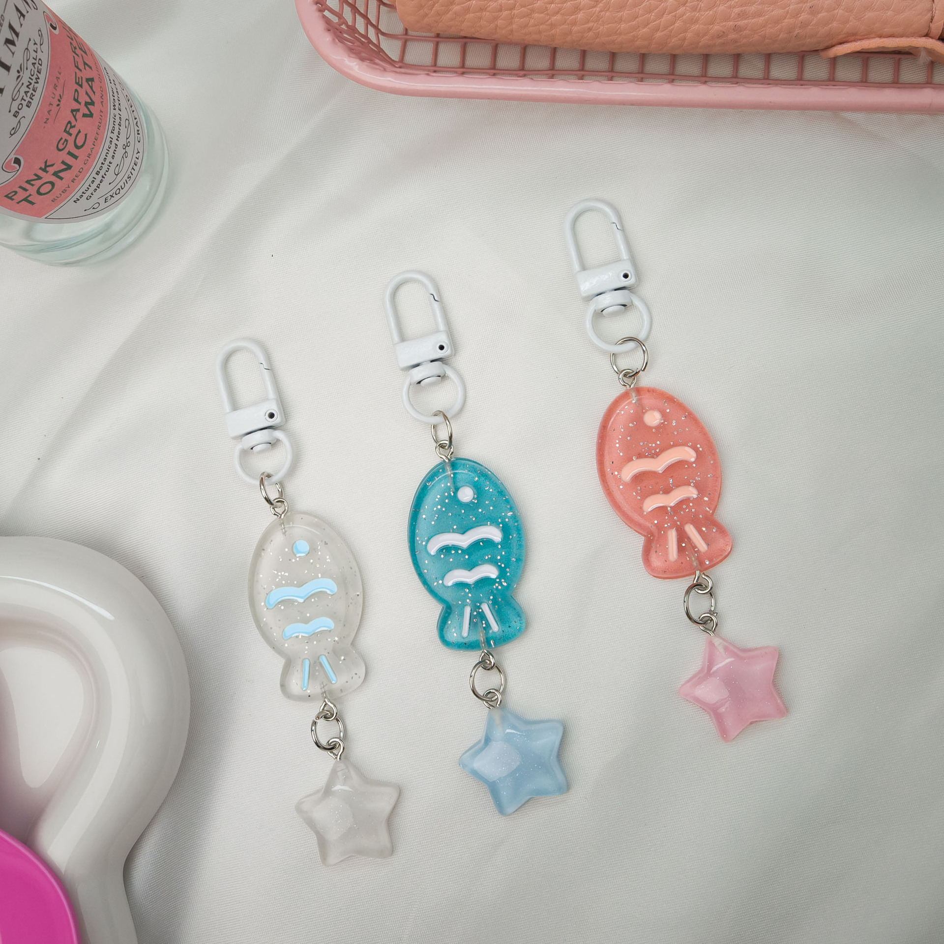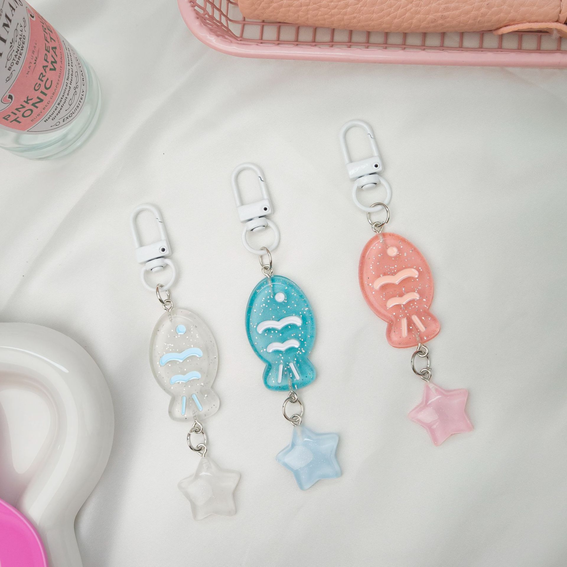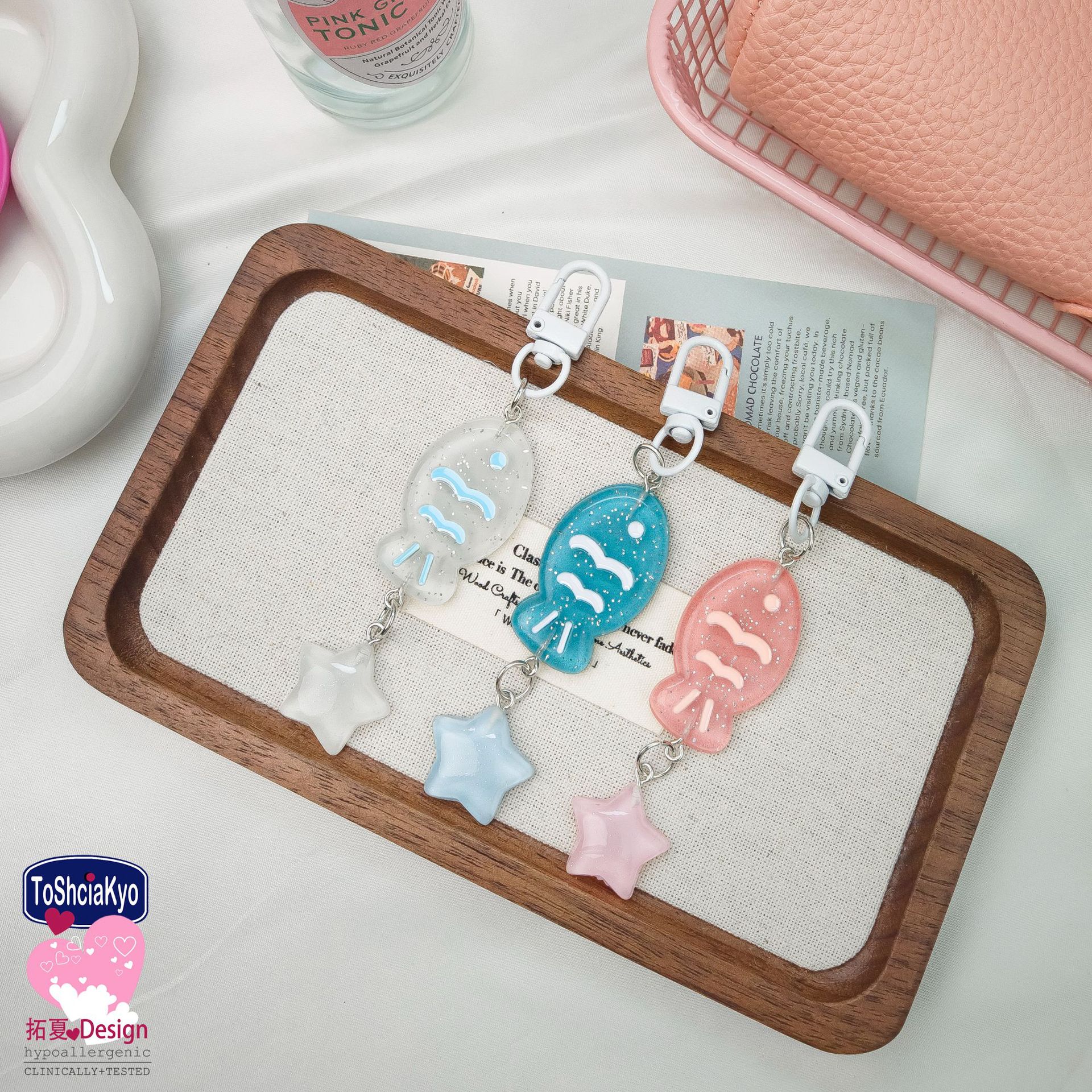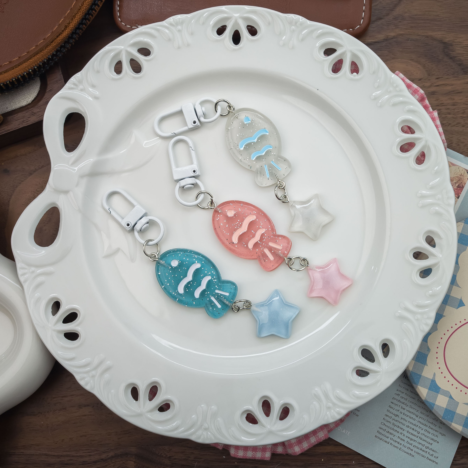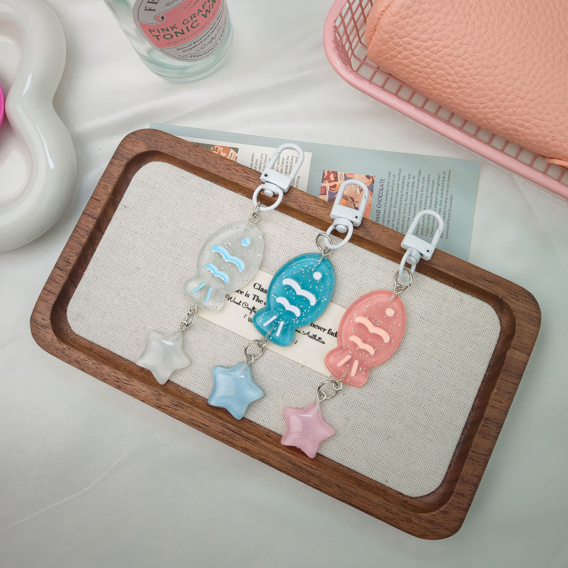 门星H54小清新夏日清透鲷鱼烧钥匙扣亮晶晶星星吊坠挂件闺蜜情侣