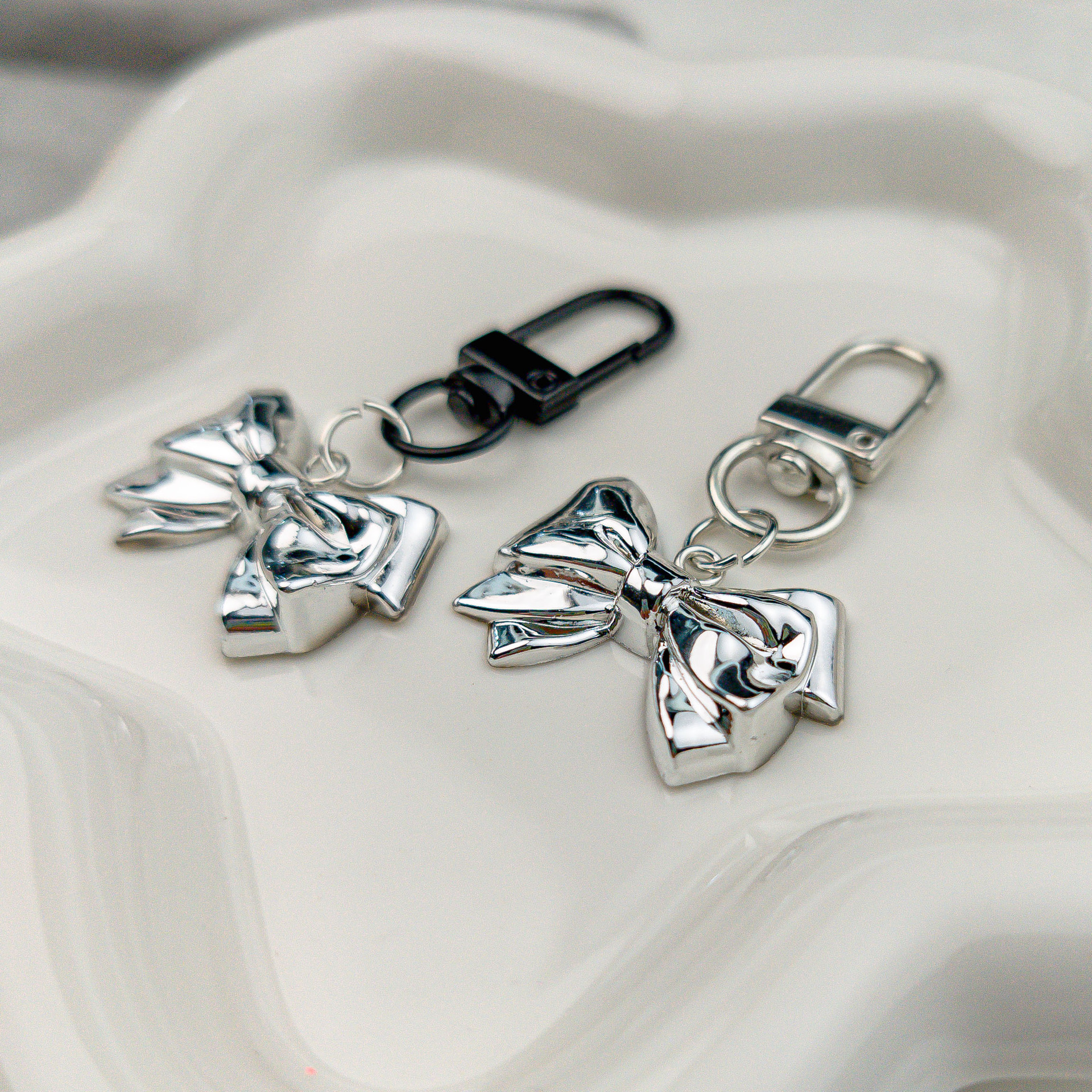 ドアバックルH74金属風高級感シルバー蝶結びキーホルダー携帯電話女子学生カバンストラップアクセサリー