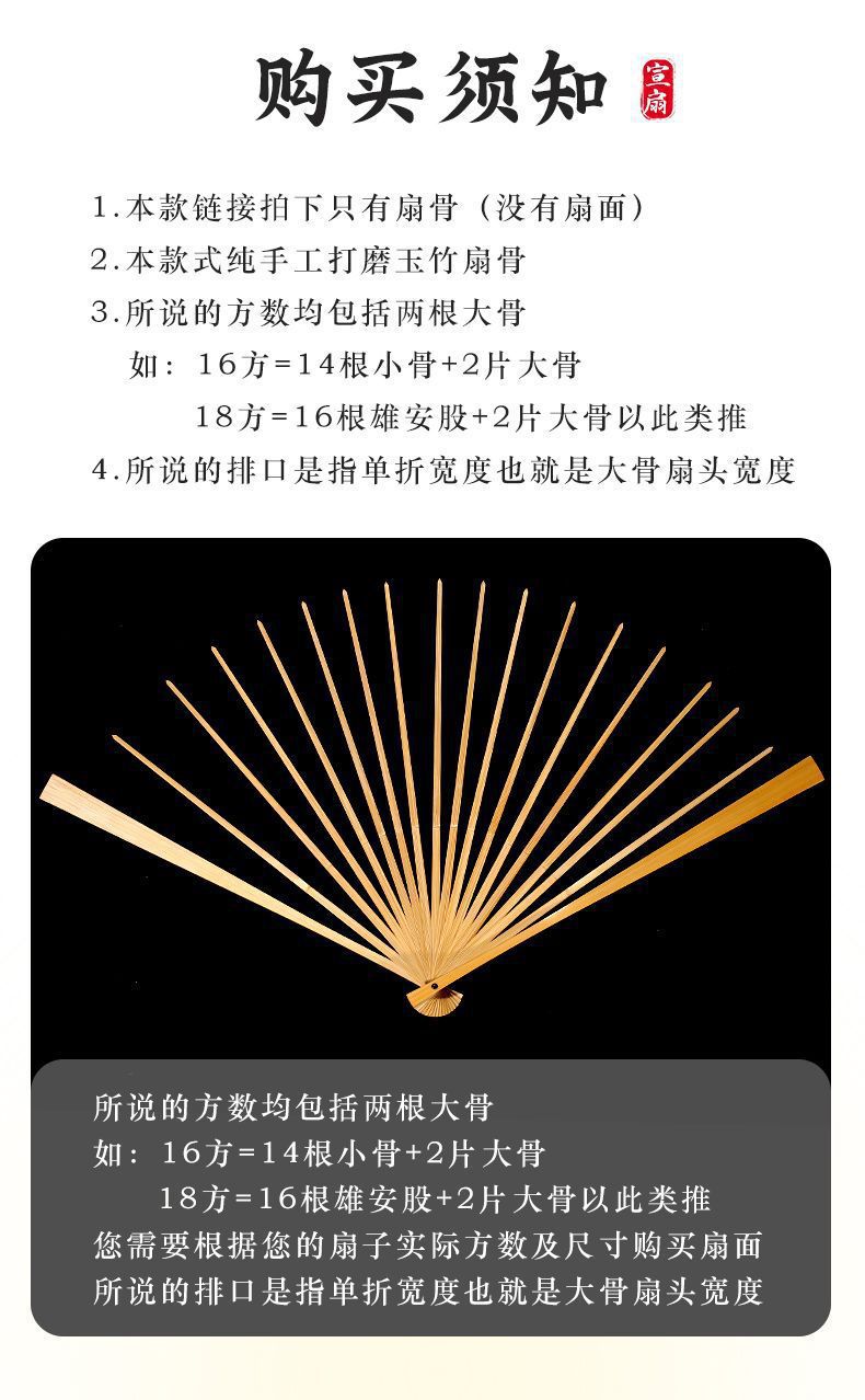 厂家批发21cm25方折扇扇骨竹制7寸扇子骨架diy手工半成品雕刻竹节