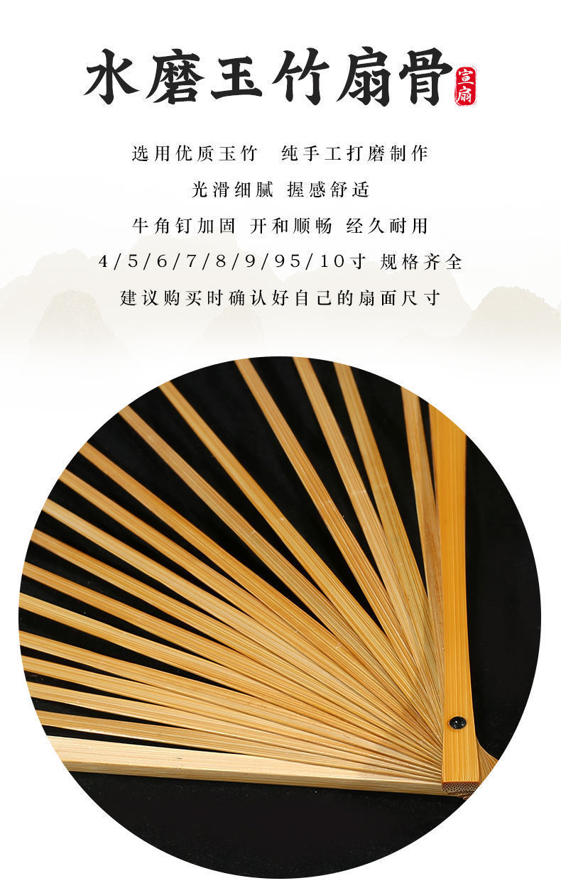 逸品の手作りの玉竹の扇子の扇子の骨の蘇工の空白の宣紙の文は古風な男性を遊んで竹の扇子の卸売りを遊びます。