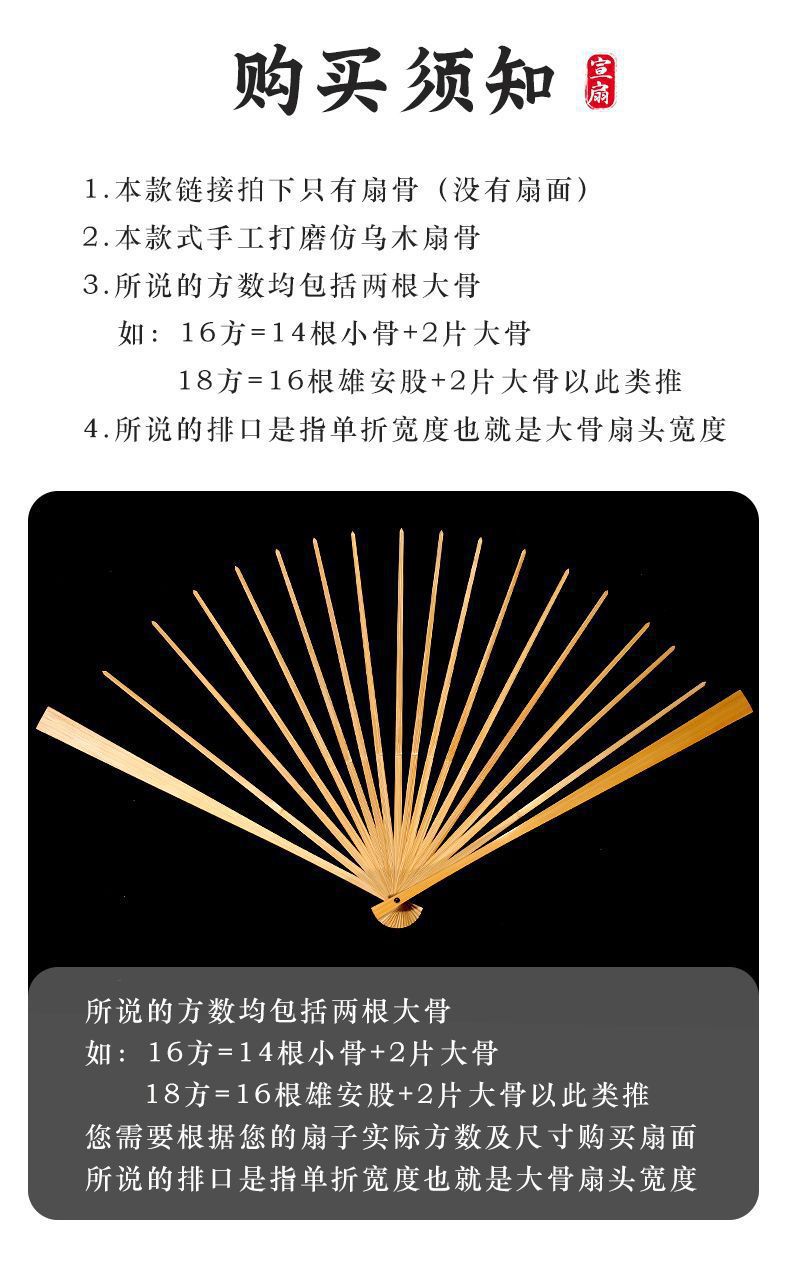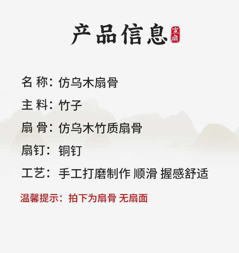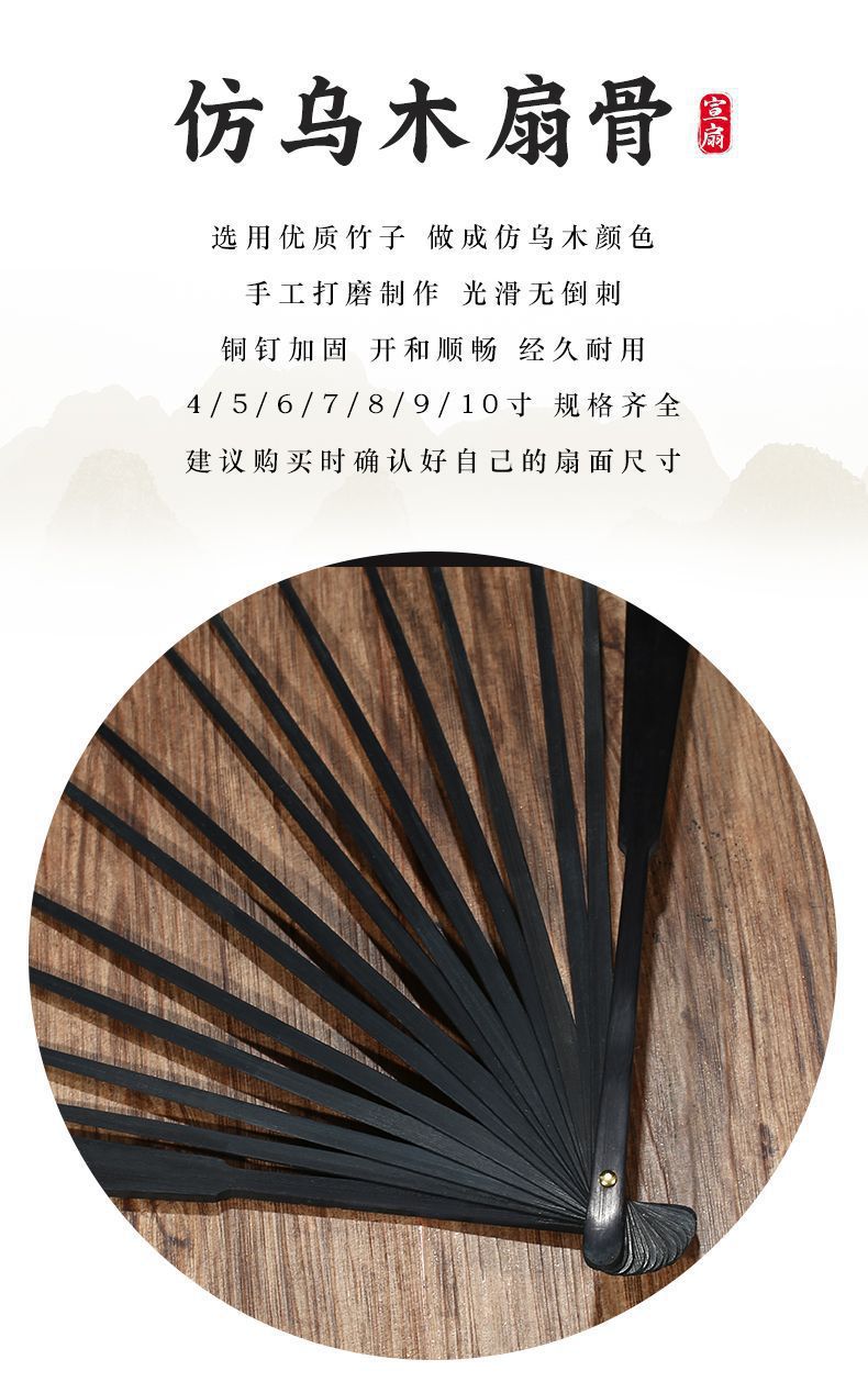 - インチライスペーパー扇子、竹扇子、骨格半製品、手作りアクセサリー、翡翠竹模造黒檀