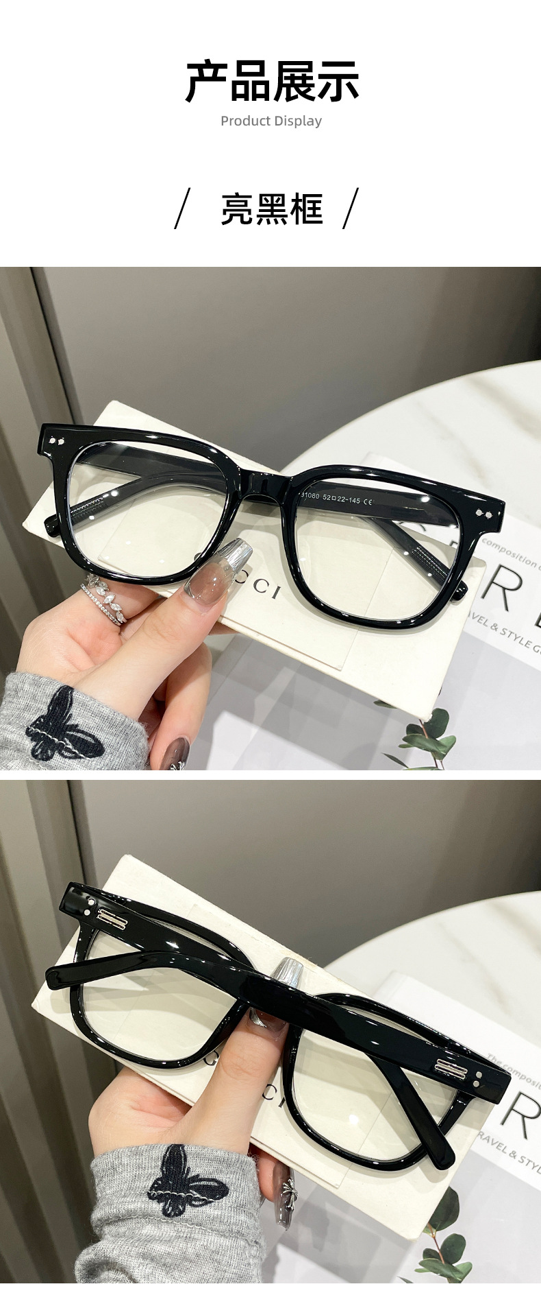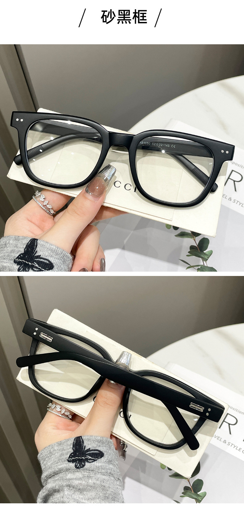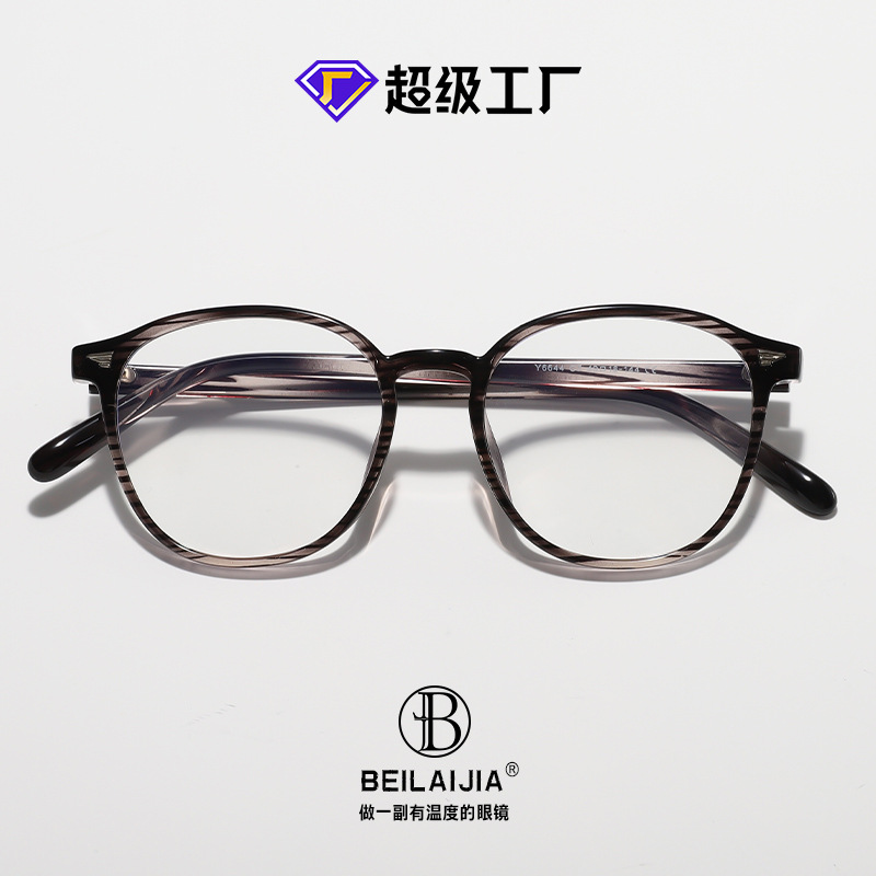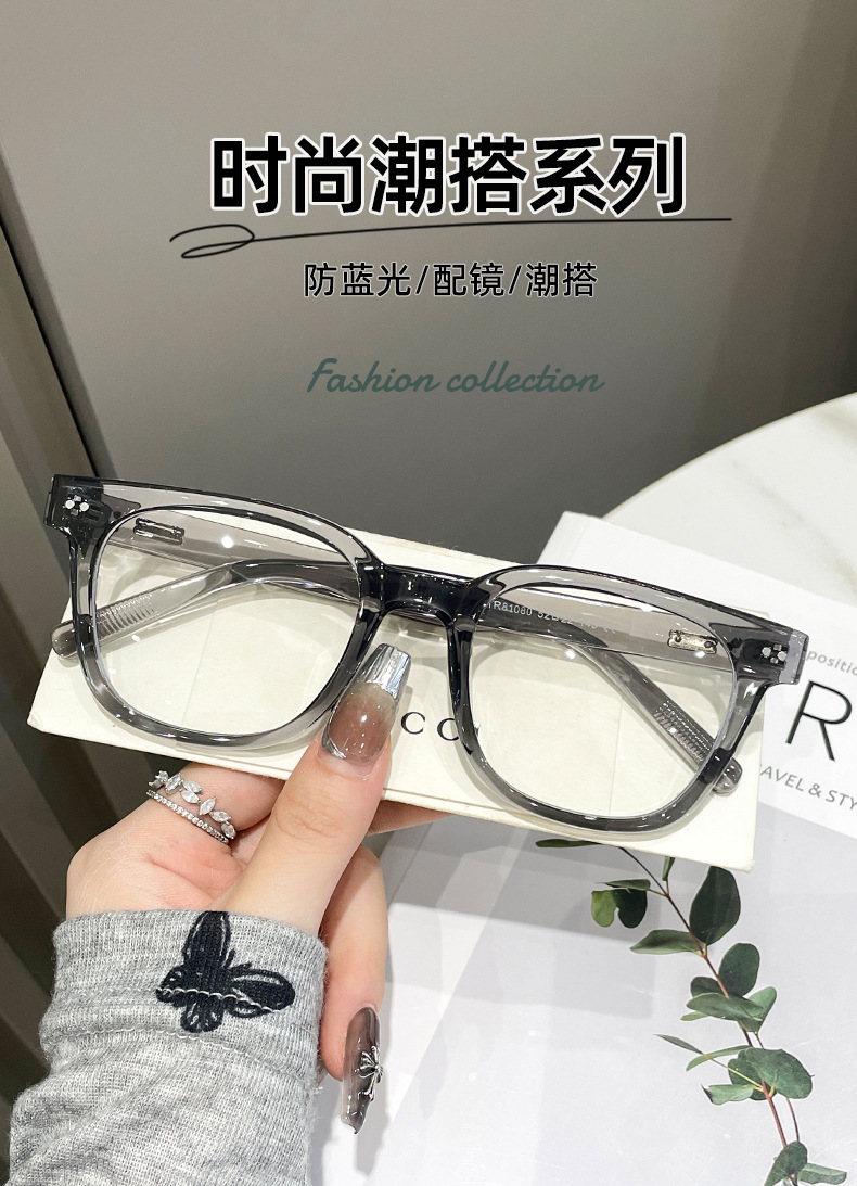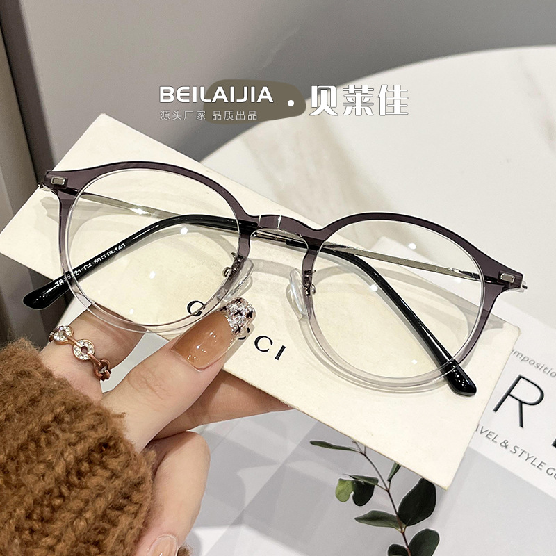 TR90米钉防蓝光眼镜金属插针男女韩版大框圆形平光镜显脸小眼镜架