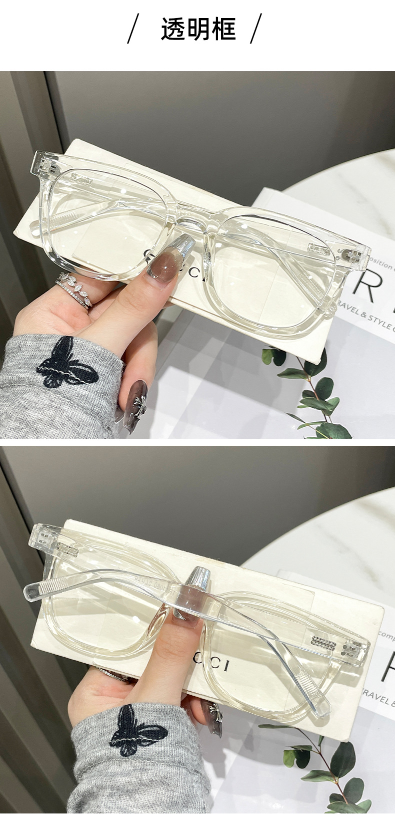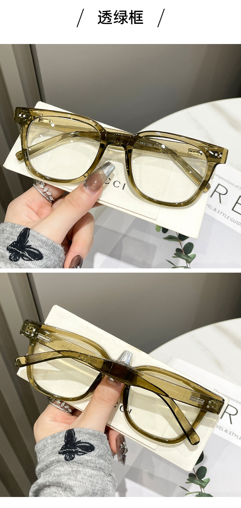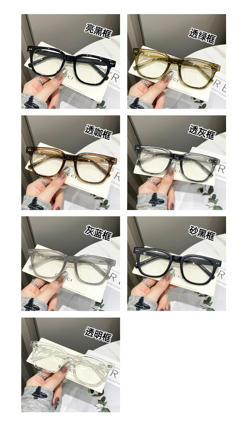 フレームカラー 光沢のある黒のフレーム,半透明のグリーンフレーム,グレーブルーフレーム,サンドブラックフレーム,透明フレーム,透明なグレーのフレーム,透明なコーヒーフレーム