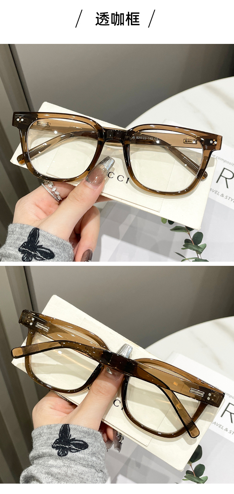 小红书同款焦糖棕显白tr大框眼镜显瘦防蓝光眼镜方框眼镜可配度数