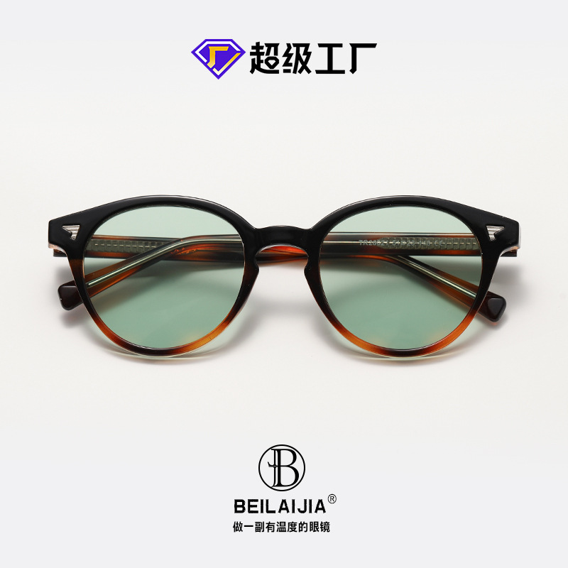 日系手工文艺太阳眼镜男圆形小框TR插针墨镜女高级感米钉遮阳眼镜
