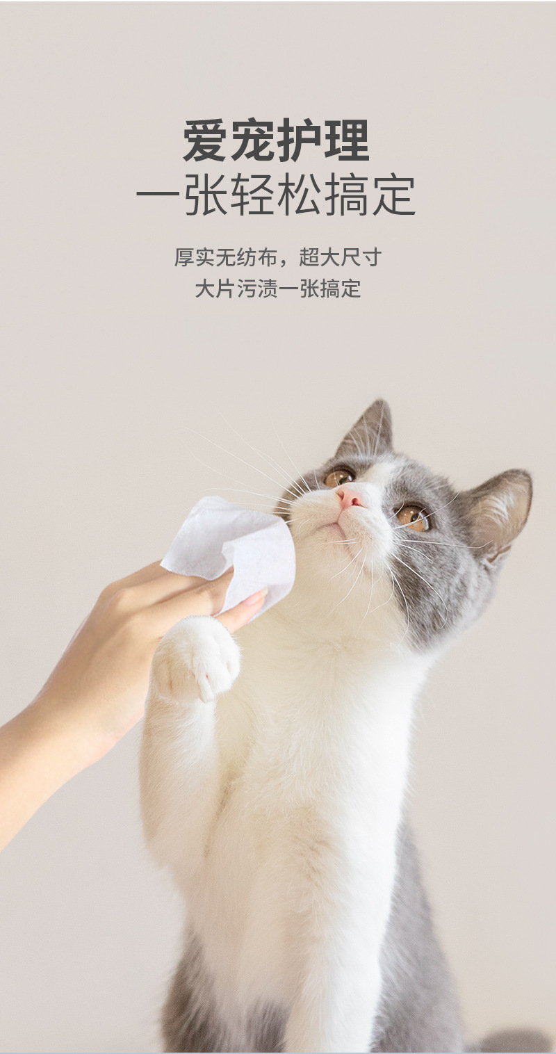 80はペットのウェットティッシュを吸います。猫の犬は涙の跡を拭いて体の部位を掃除します。