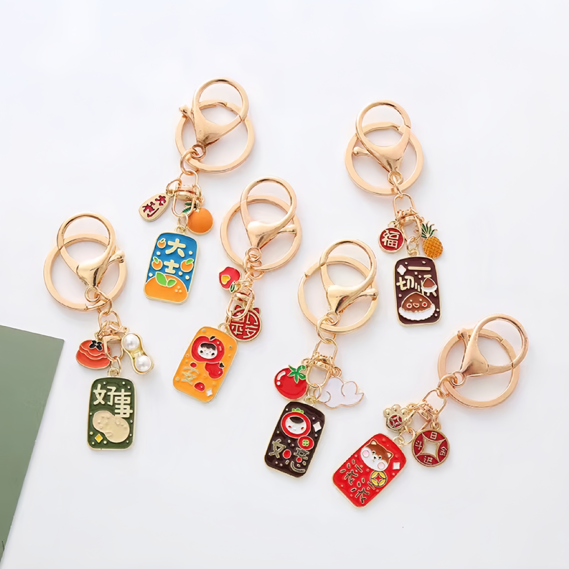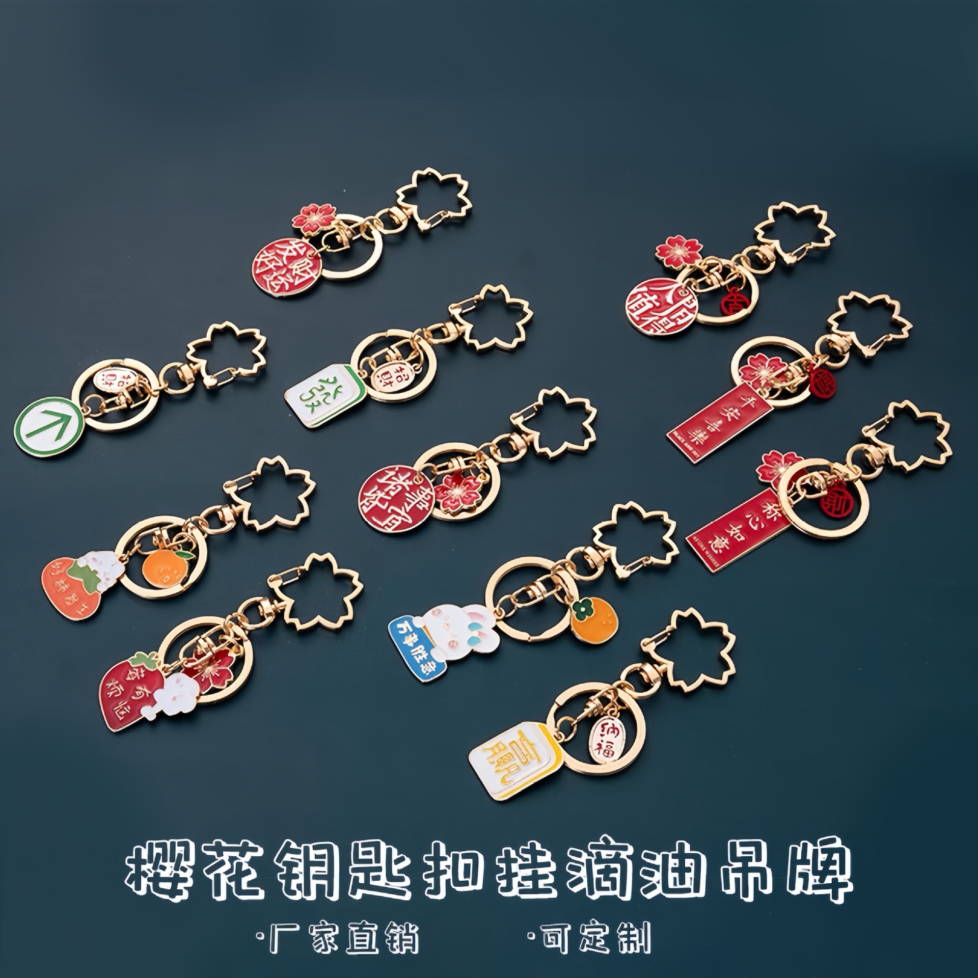 クリエイティブキーチェーン合金滴る油祝福キーホルダー柿如意フルーツワードカーバッグペンダント
