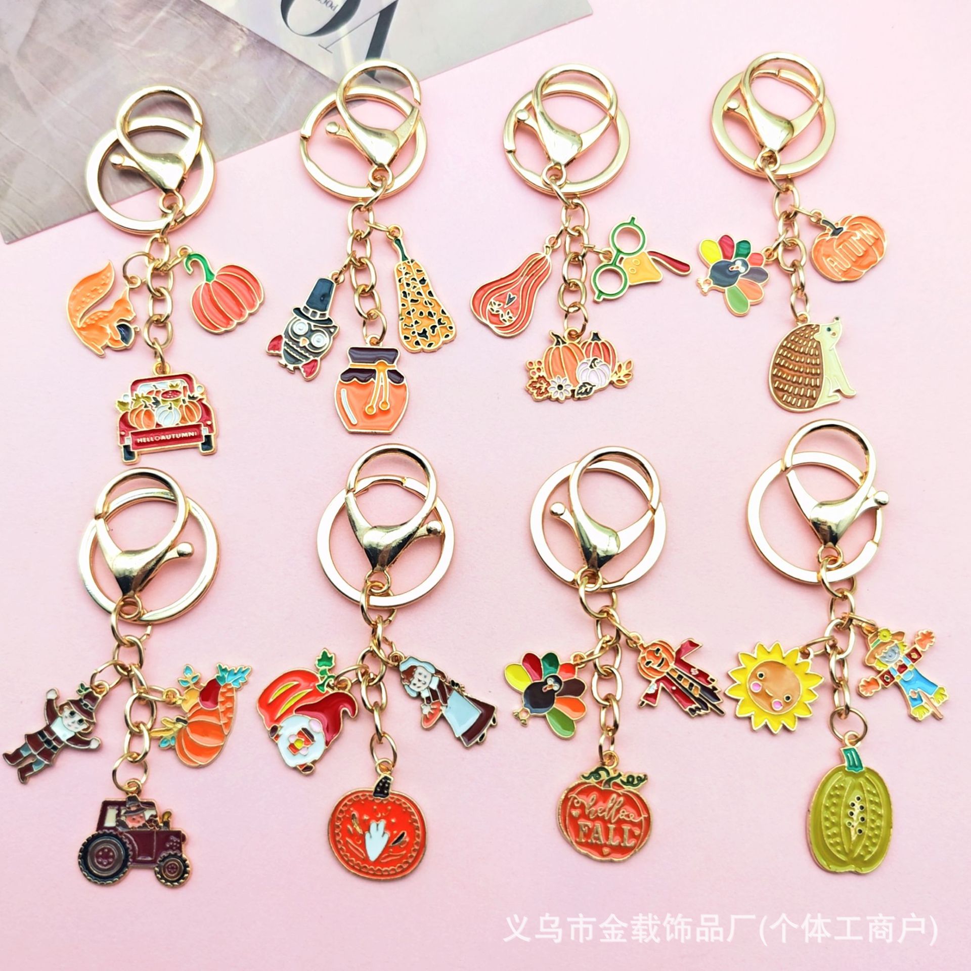 クロスボーダー感謝祭キーホルダーキノコ七面鳥カボチャかかし合金ペンダントバッグペンダント収穫ギフト