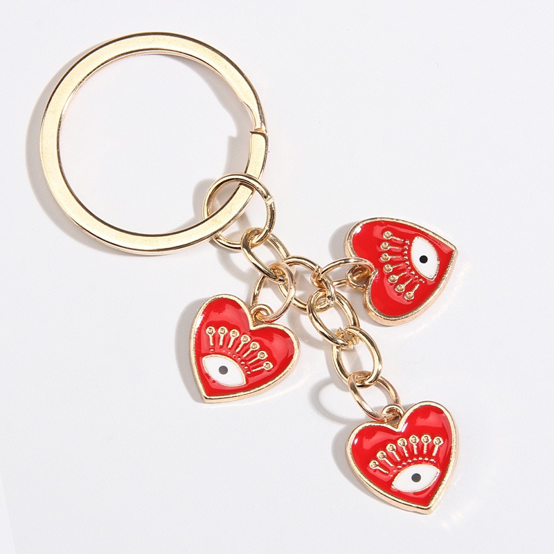 ヨーロッパとアメリカンスタイルの幾何学的なオイルドリップデーモンアイペンダントメタルキーホルダーパーソナライズされたエスニックスタイルのダイヤモンドがちりばめられたバッグペンダント