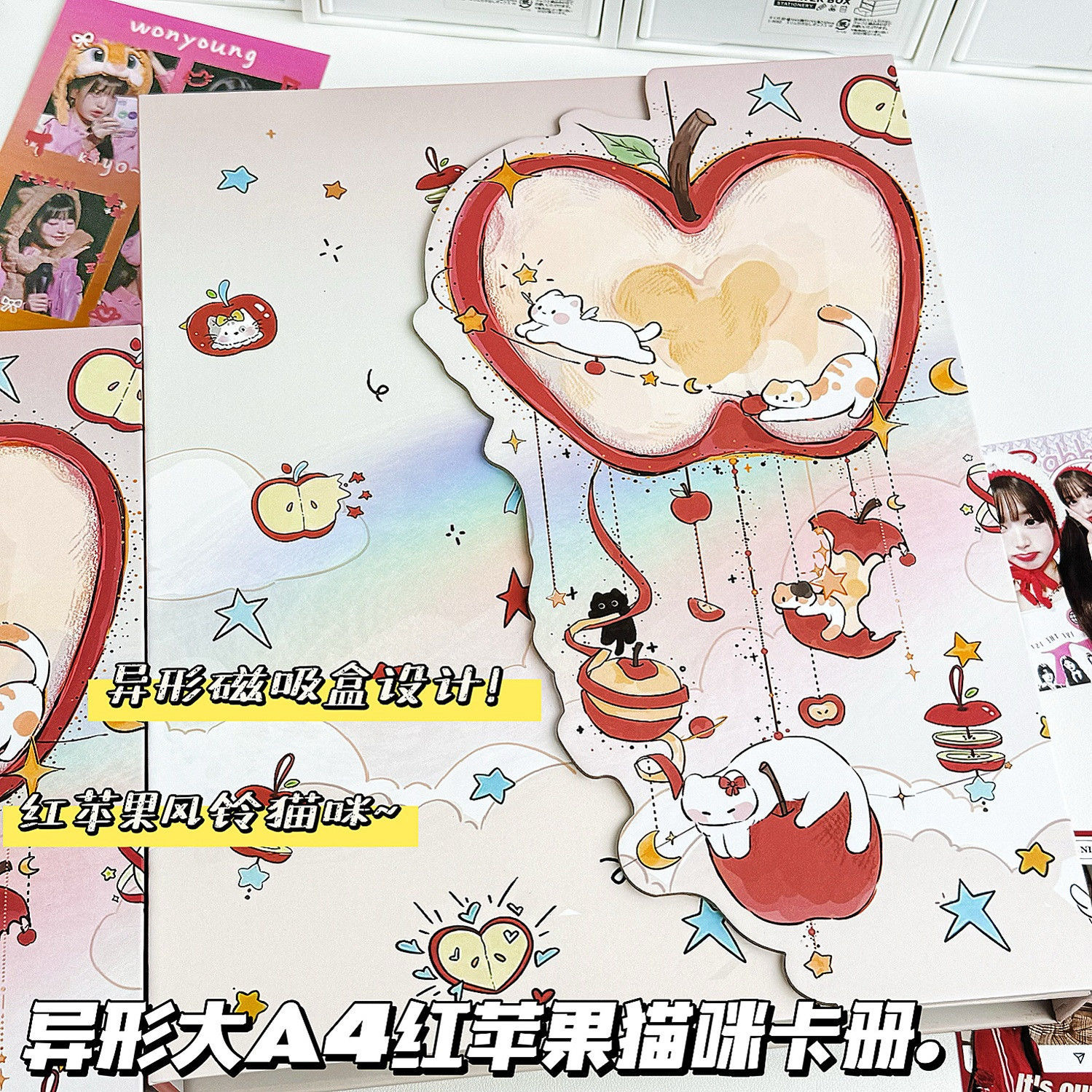 异形红苹果小猫大A4卡册磁吸盒活页九宫格超硬外壳追星小卡收纳册