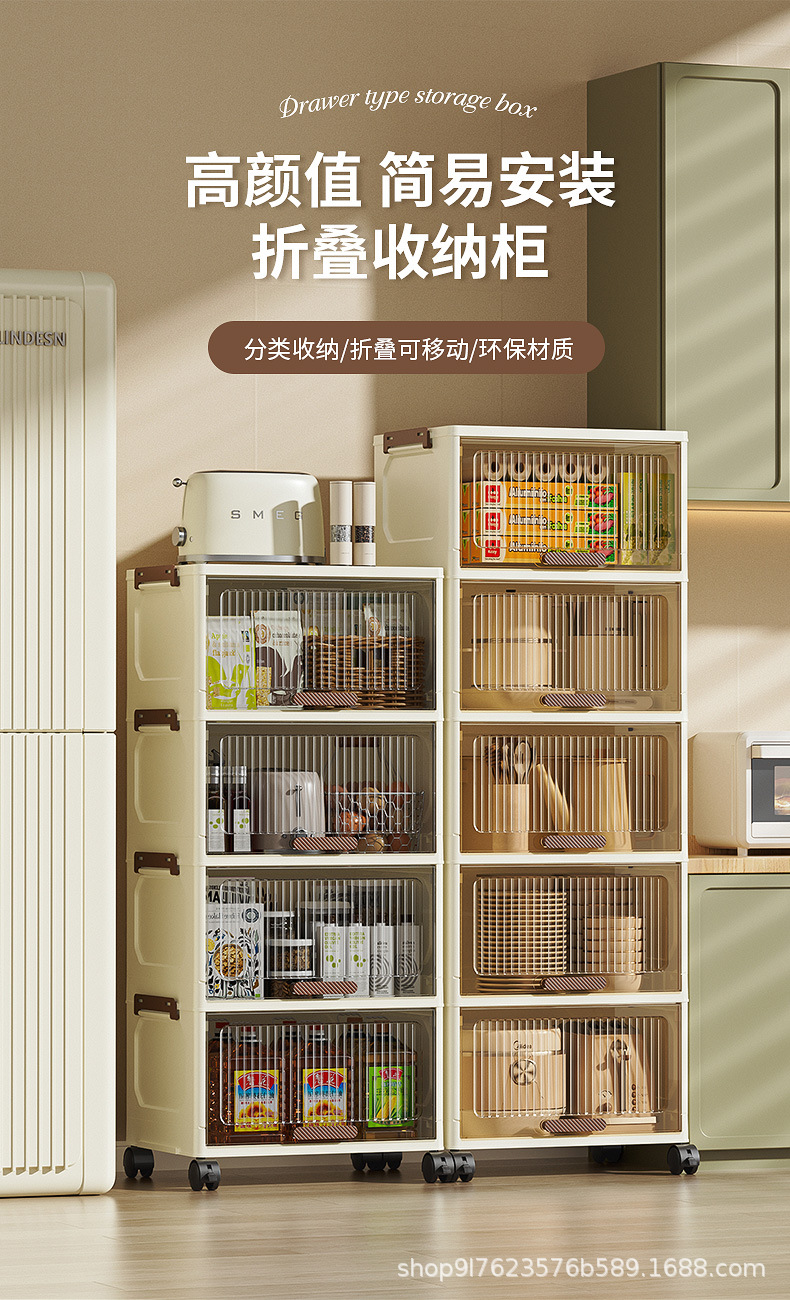 折り畳み棚戸棚家庭用キッチン多層移動収納棚客間玩具箱間食床置きロッカー