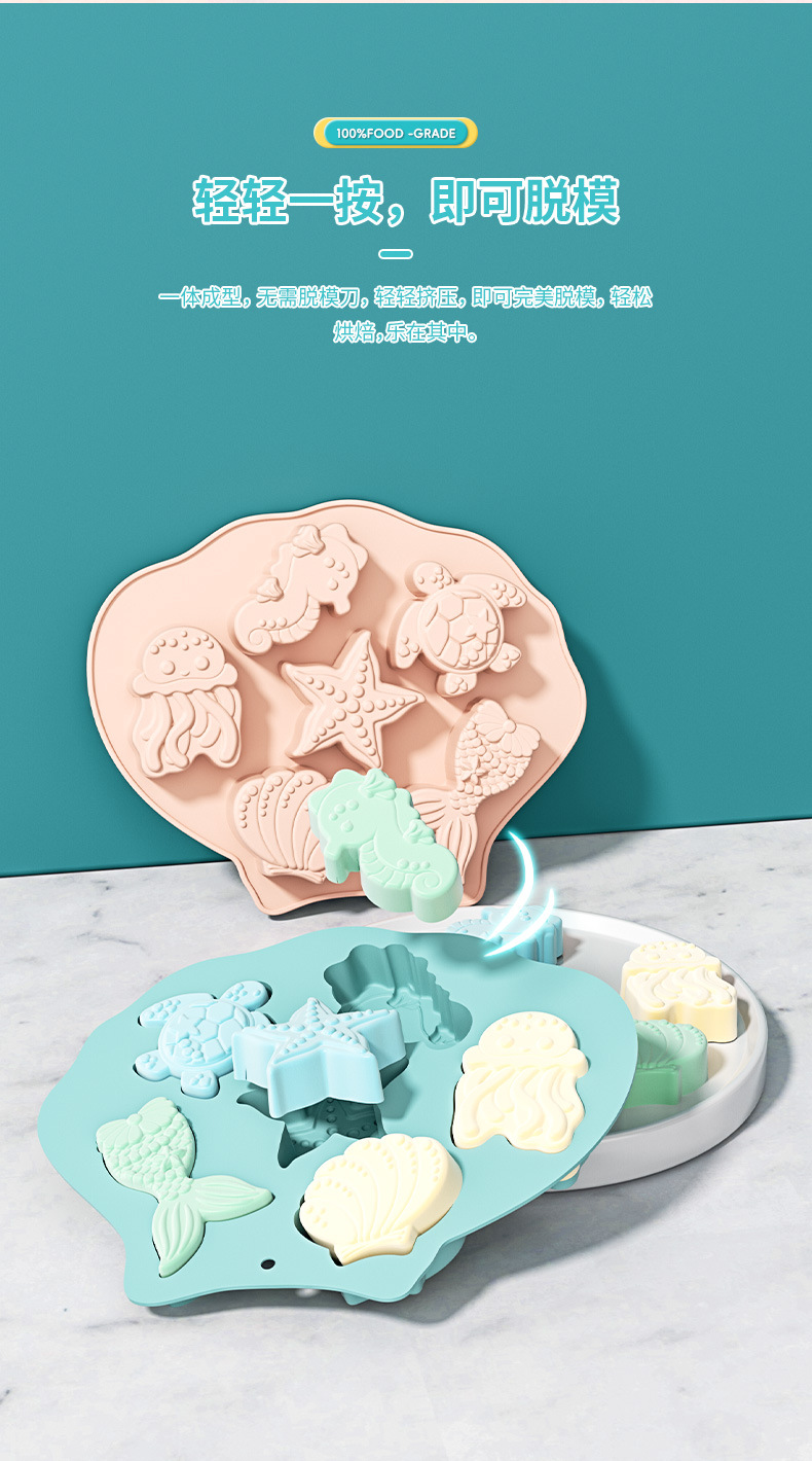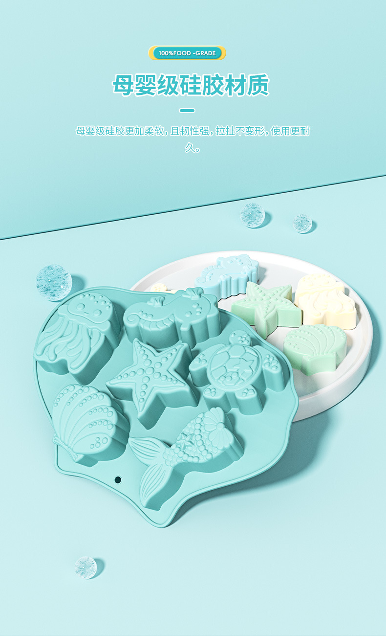国境を越えたマーメイド五芒星シリコン金型耐高温食品級シリコンキッチンケーキ金型焙煎ツール