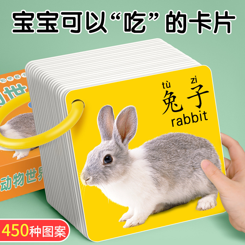 動物カード早教認知啓蒙書子供の識字赤ちゃんは物図を見て、幼児は字を知っています。