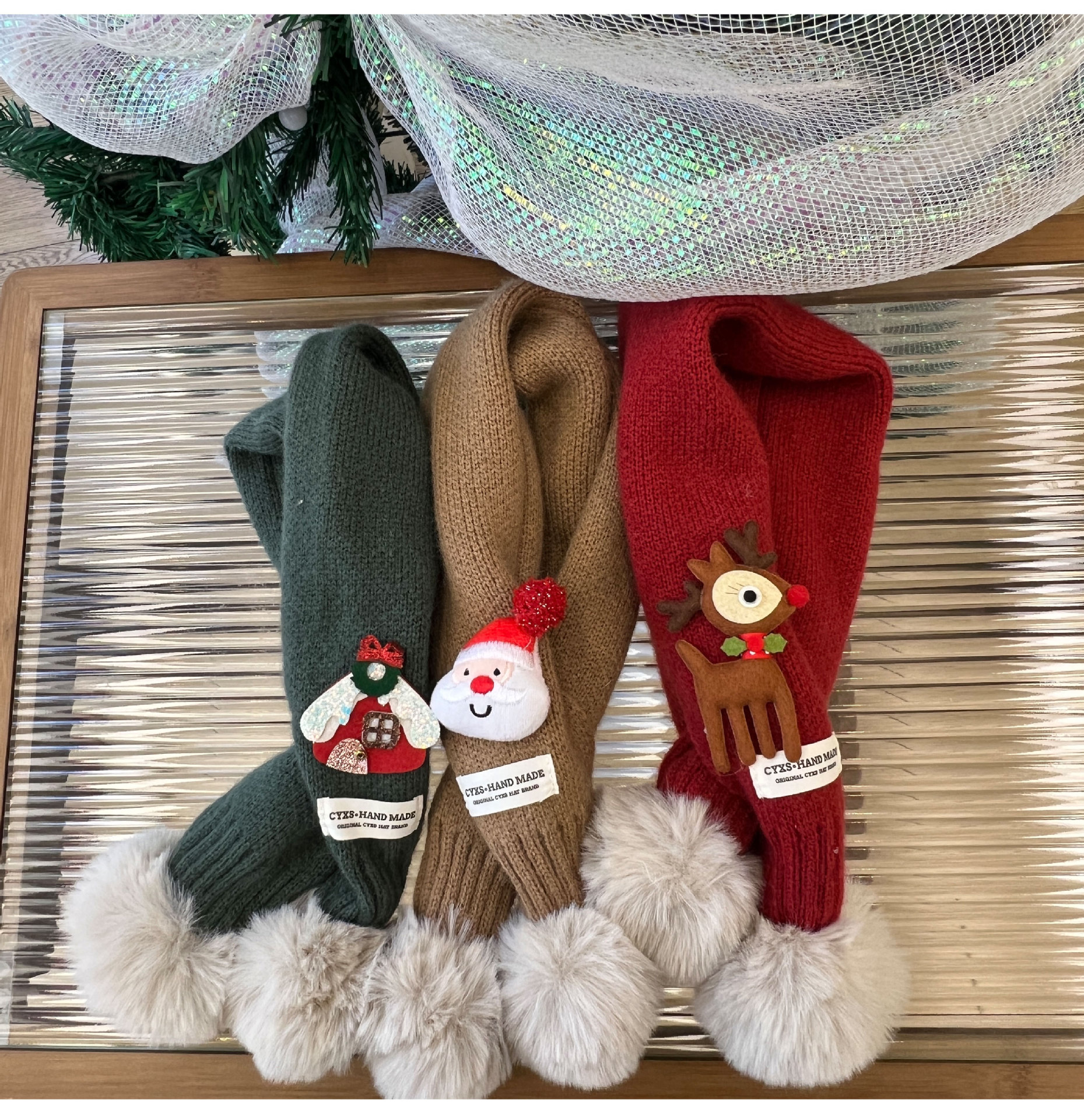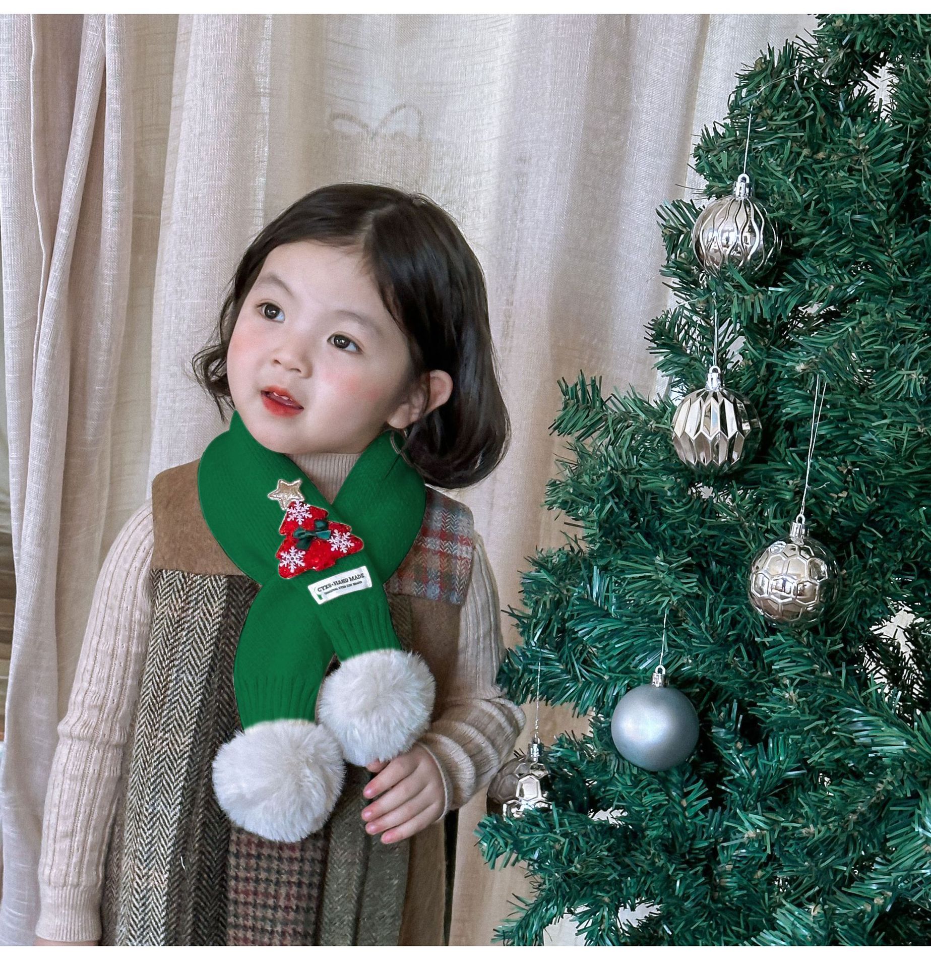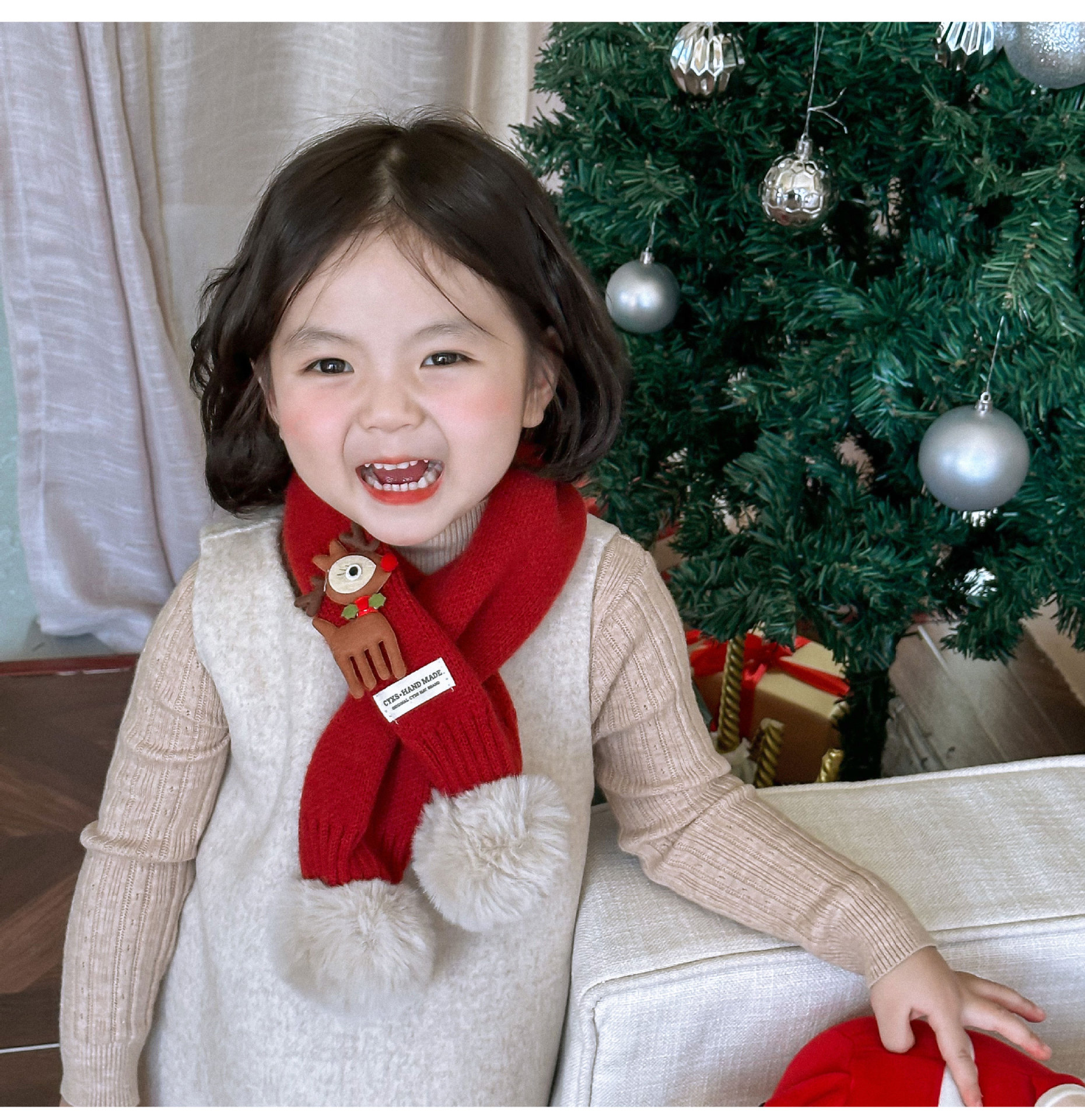 クリスマスの子供のマフラーは秋冬の洋風毛玉保温ニットの赤ちゃんが首を囲んで祝日の赤い男女のマフラーです。