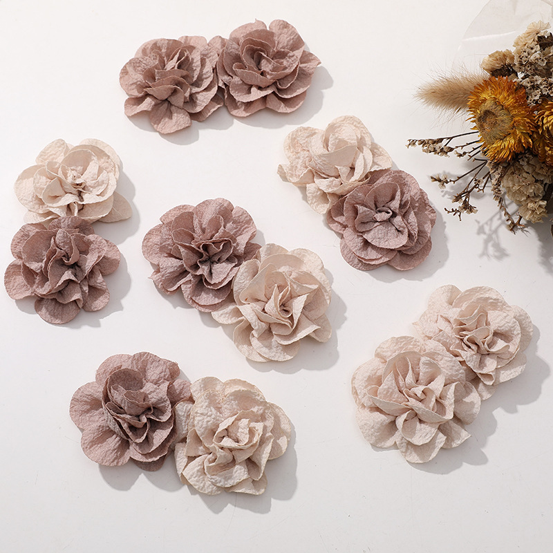 清冷感古风气质褶皱布艺山茶花diy手工鞋花发夹发饰服饰辅料批发