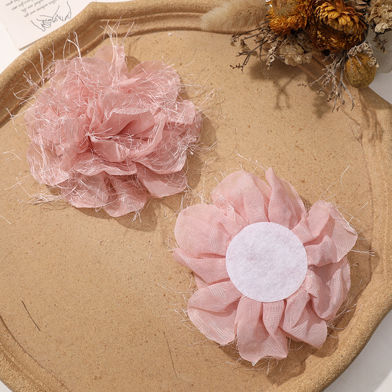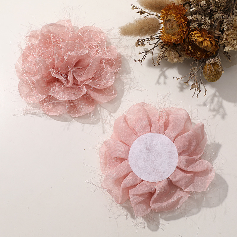 お姫様の髪飾り欧根紗の薄い桃の粉の花diy手作りの布芸のヘアピンのイヤリングの材料の卸売り