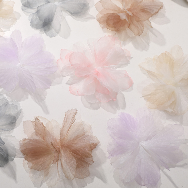 オーガンザカラーグラデーション花びらプレスメッシュフラワー diy 手作り多用途ヘアピンヘアアクセサリー衣類アクセサリー卸売
