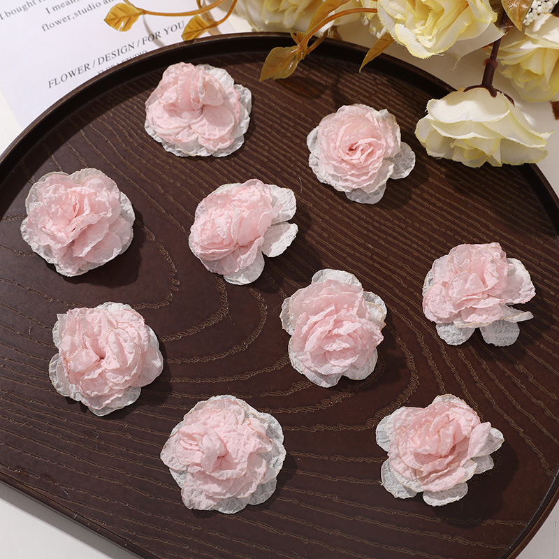 夏日甜美小清新浅粉色烧边褶皱山茶花diy耳饰发饰女鞋花材料批发