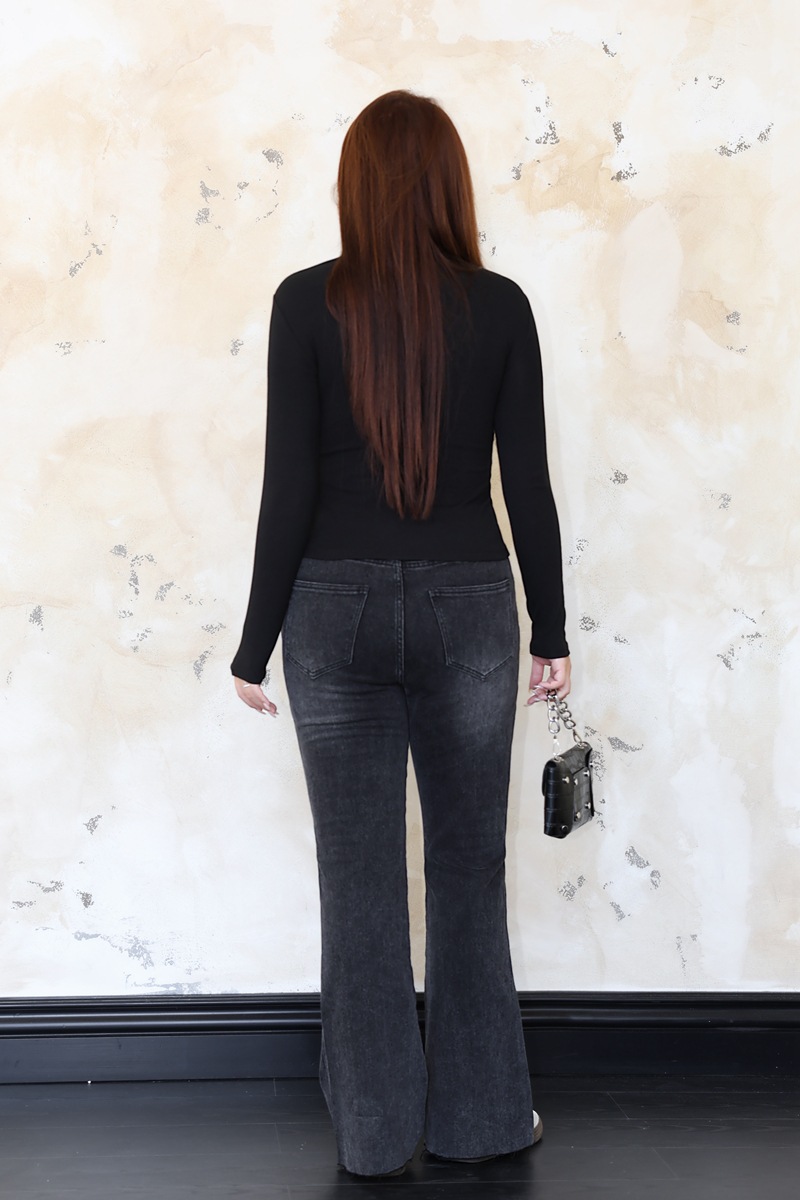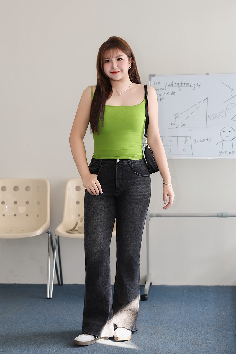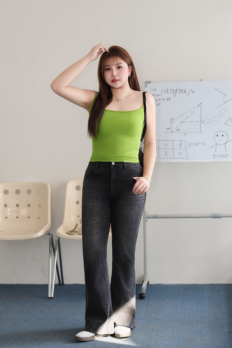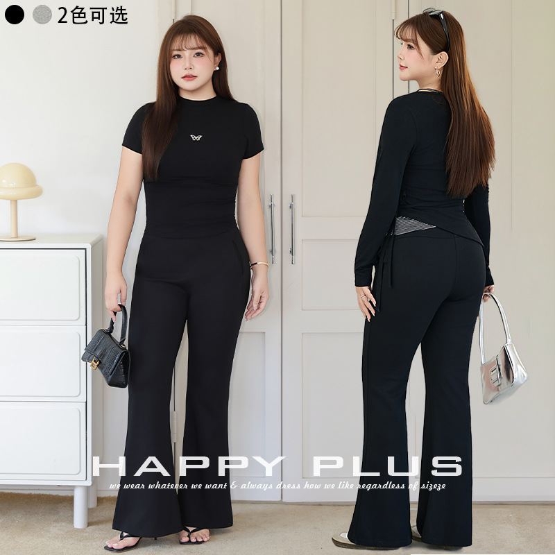 美式凉感直筒微喇弹力休闲裤润其9242大码辣妹女装显腿瘦微喇长裤