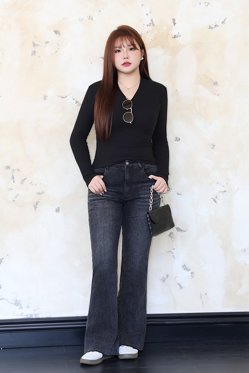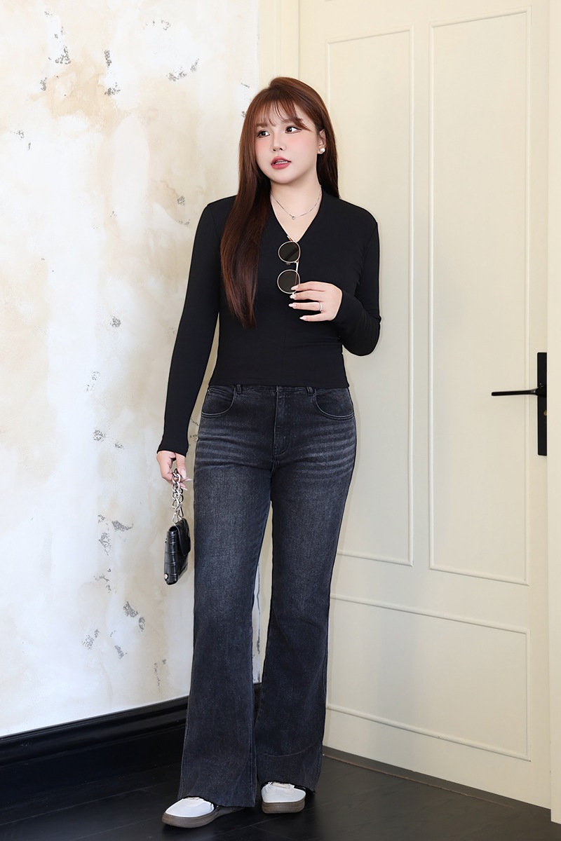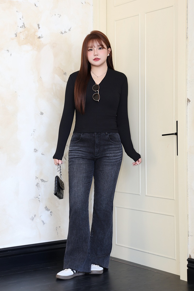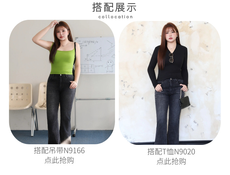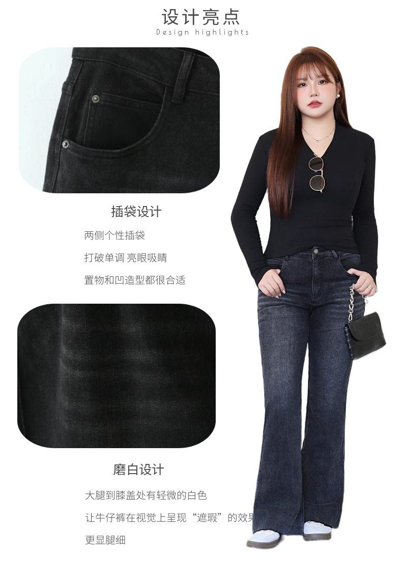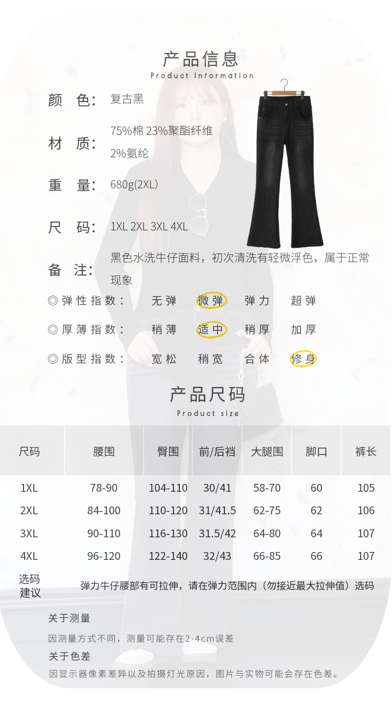大きいサイズのレディースレトロハイウエスト微フレアジーンズ2025春新作万能着痩せ体型カバー長ズボン112086