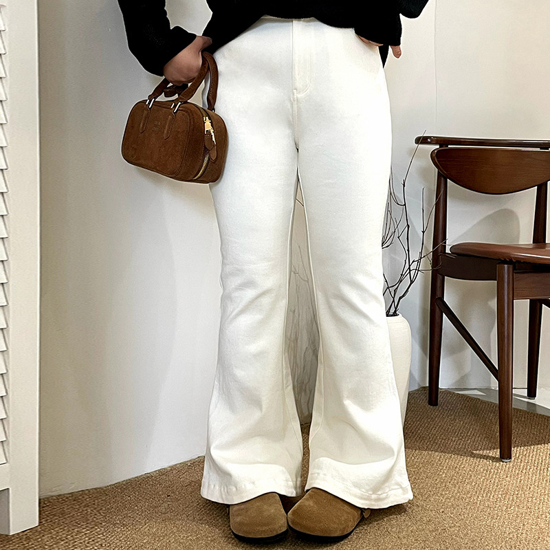 レトロな白い腰の高いラッパの弾力性は身を修めるジーパンを潤します。