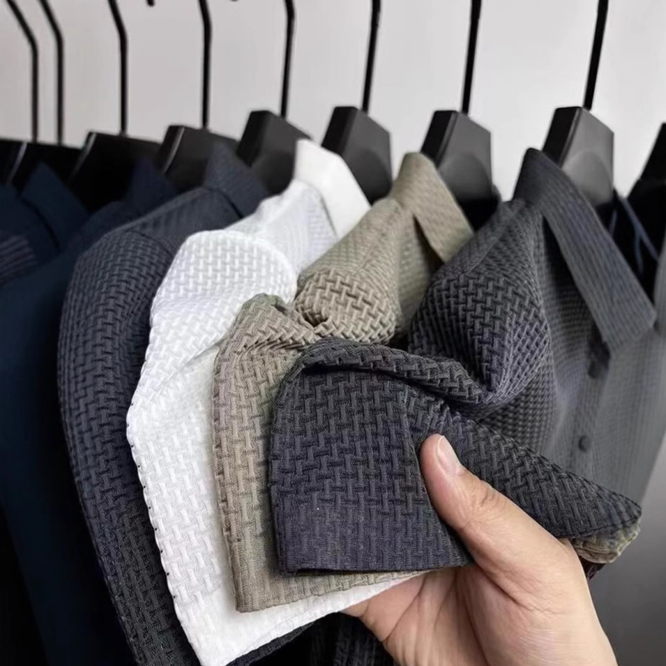 メーカー直供夏氷糸速乾シャツ男ジャカード襟半袖シャツ感カジュアル男性式垂感上着男